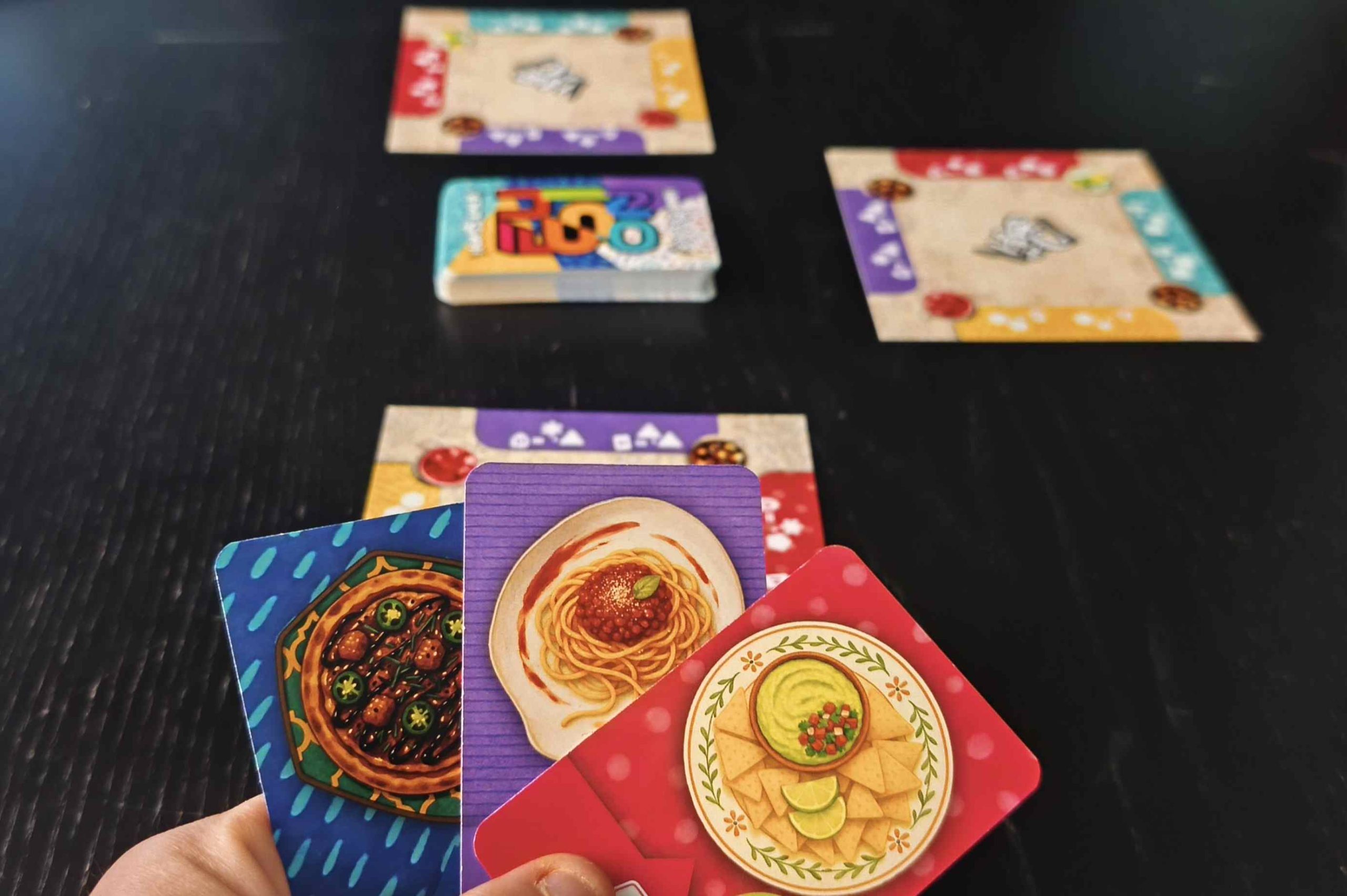 En tu turno puedes jugar platos en tu mesa respetando colores, lanzar contratiempos para bloquear a otros jugadores, usar una carta especial o descartar cartas. Los contratiempos añaden interacción constante, impidiendo que los comensales rivales se completen hasta ser eliminados.