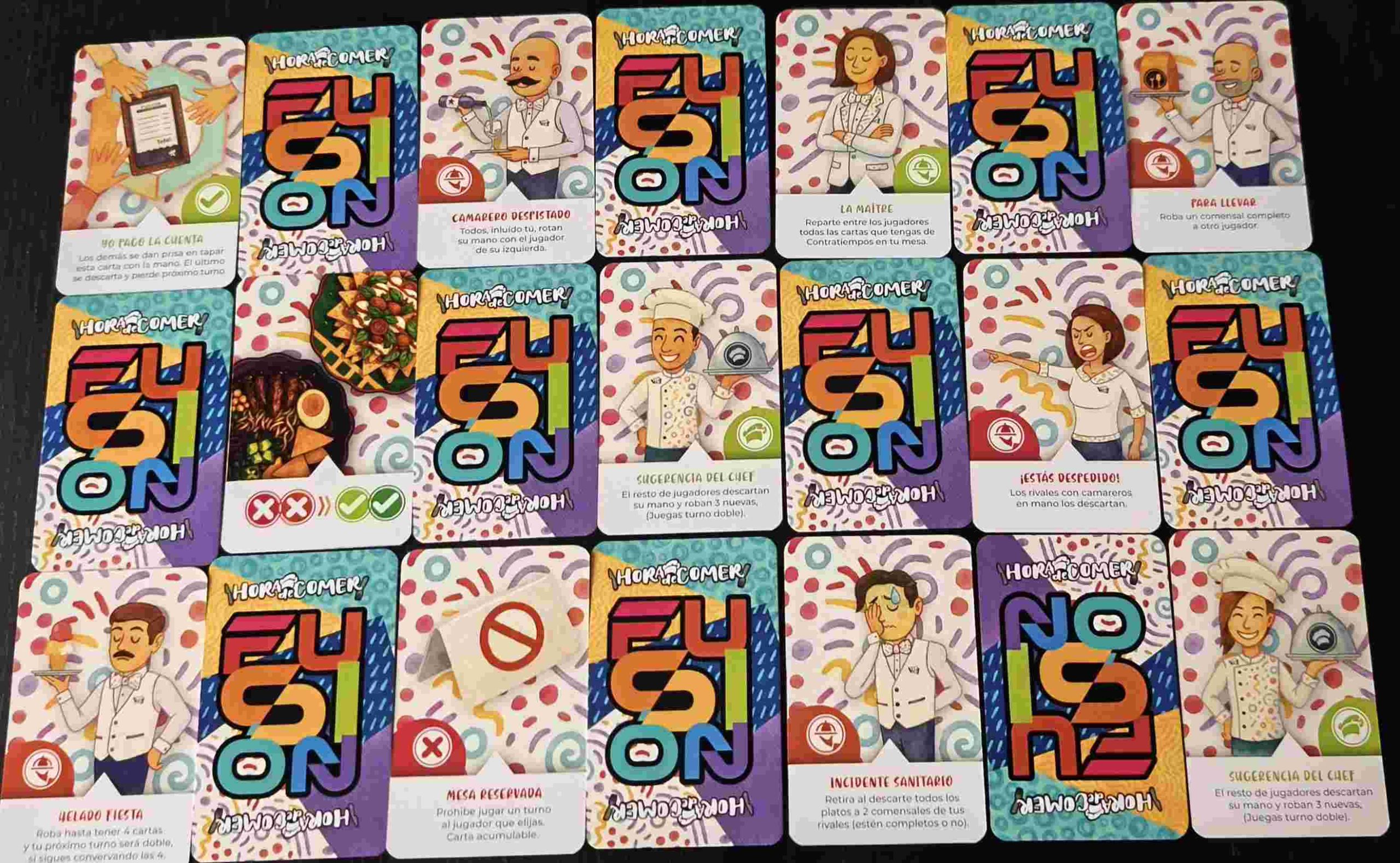 Elegir bien cuándo servir platos y cuándo sabotear. Los comodines Fusión aportan flexibilidad para cerrar comensales en el momento justo, mientras que los contratiempos generan un constante tira y afloja entre jugadores. La gestión de la mano y el timing marcan la diferencia.
