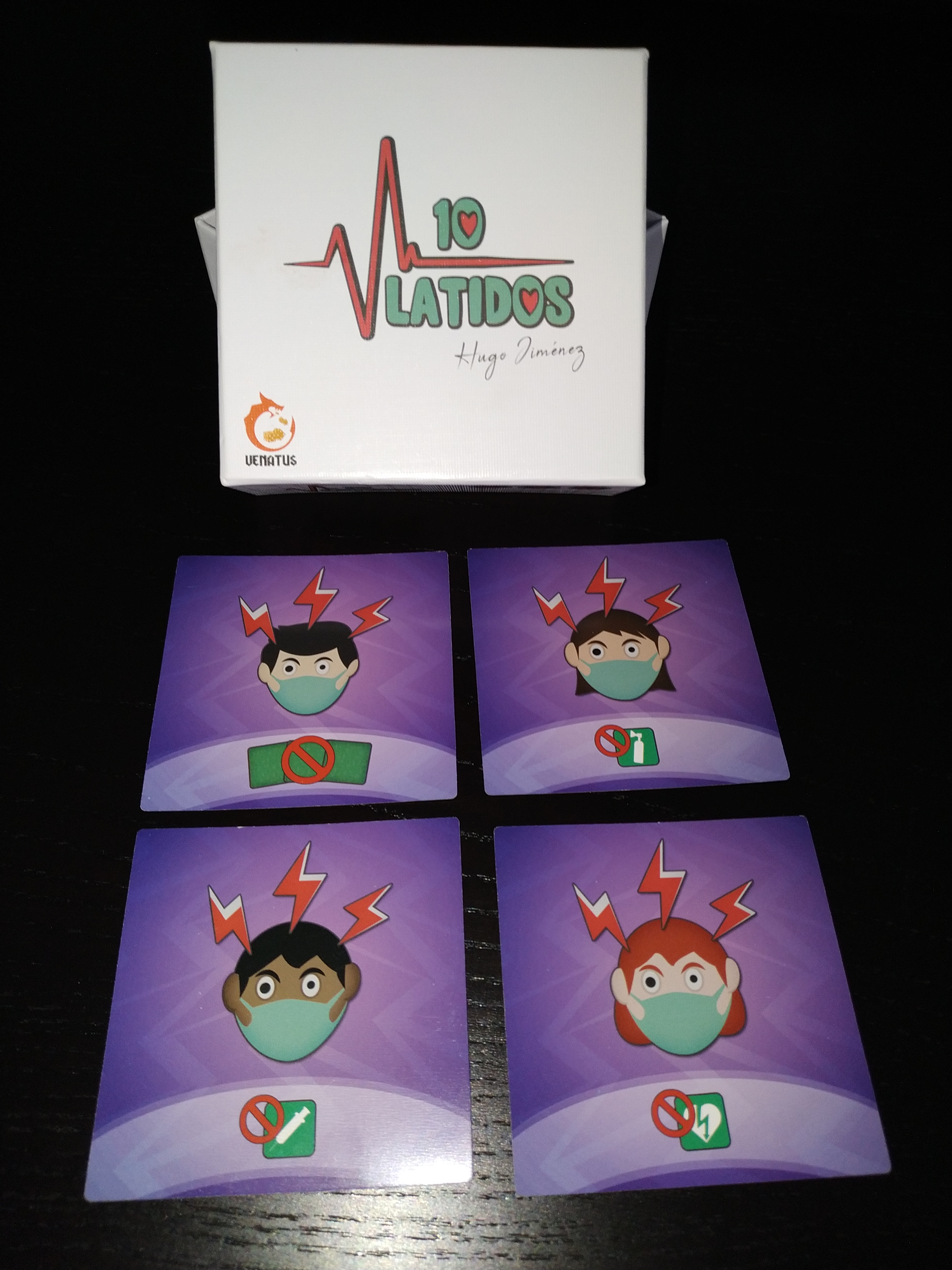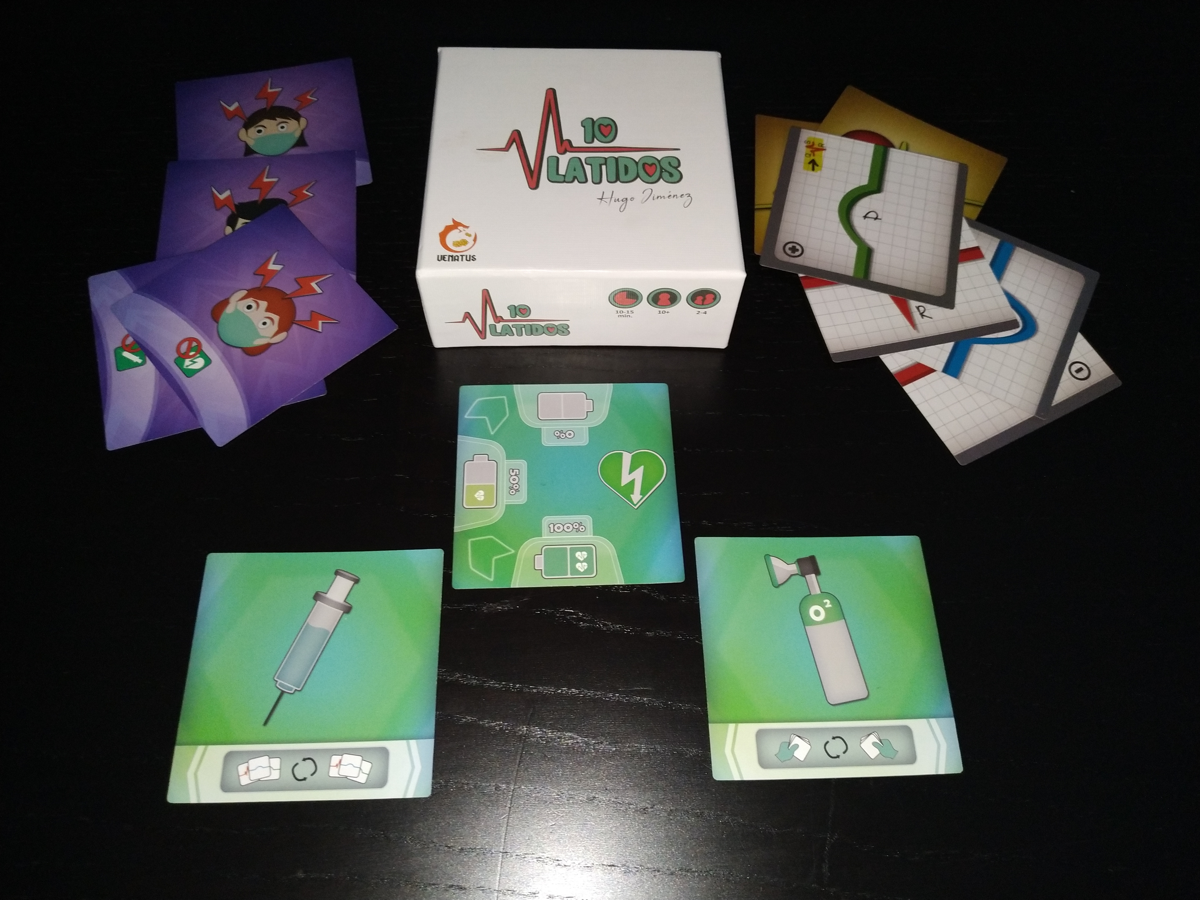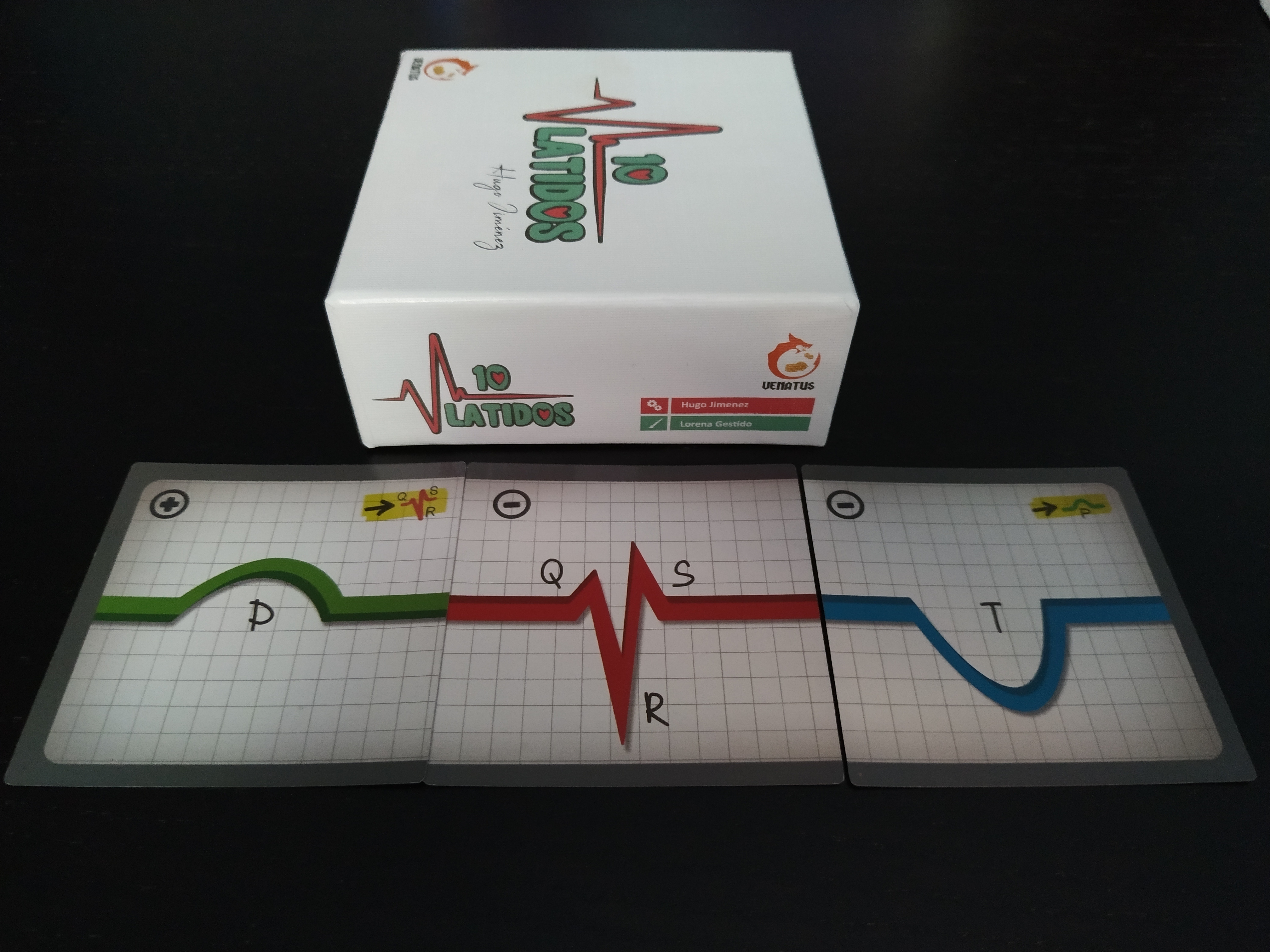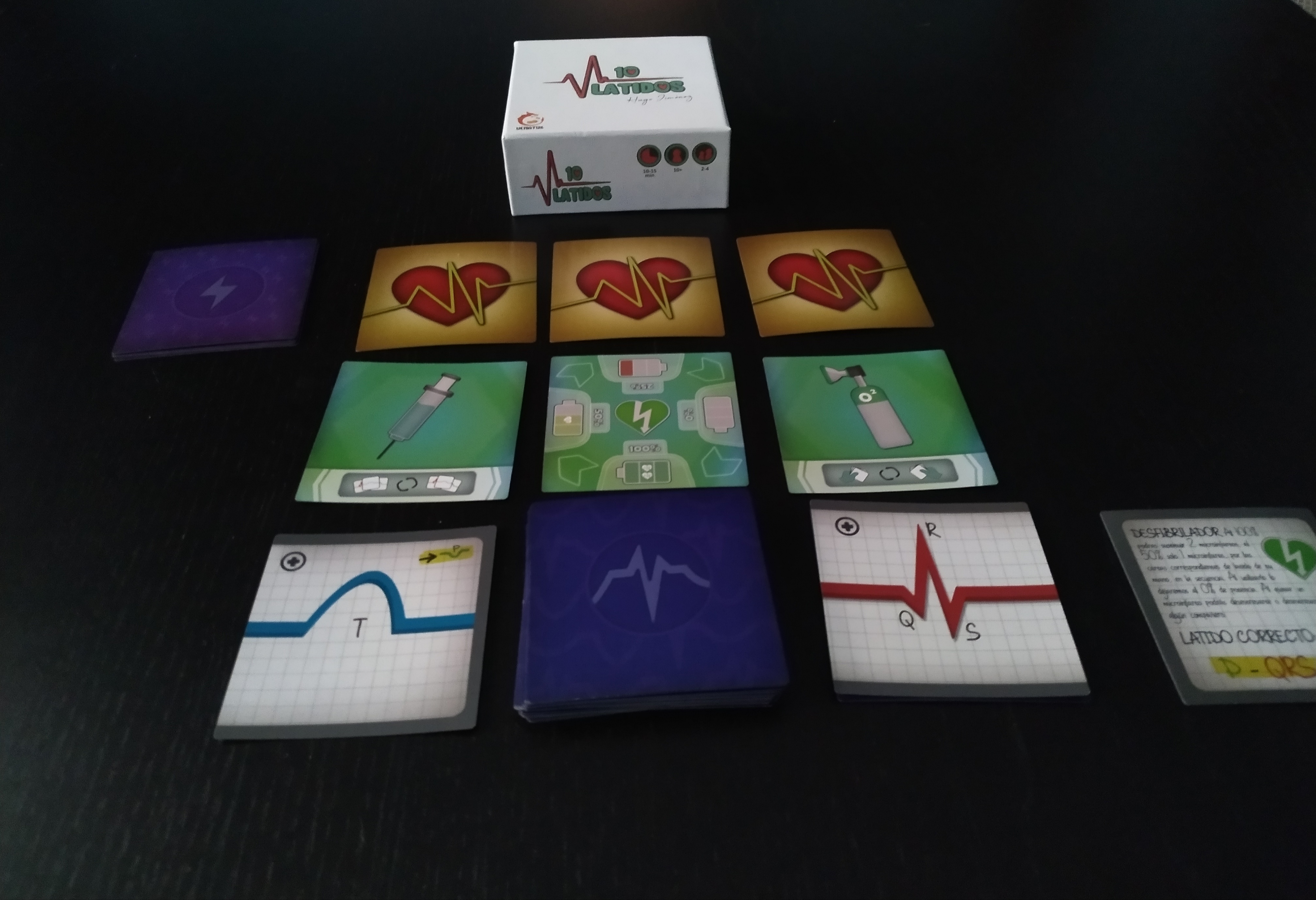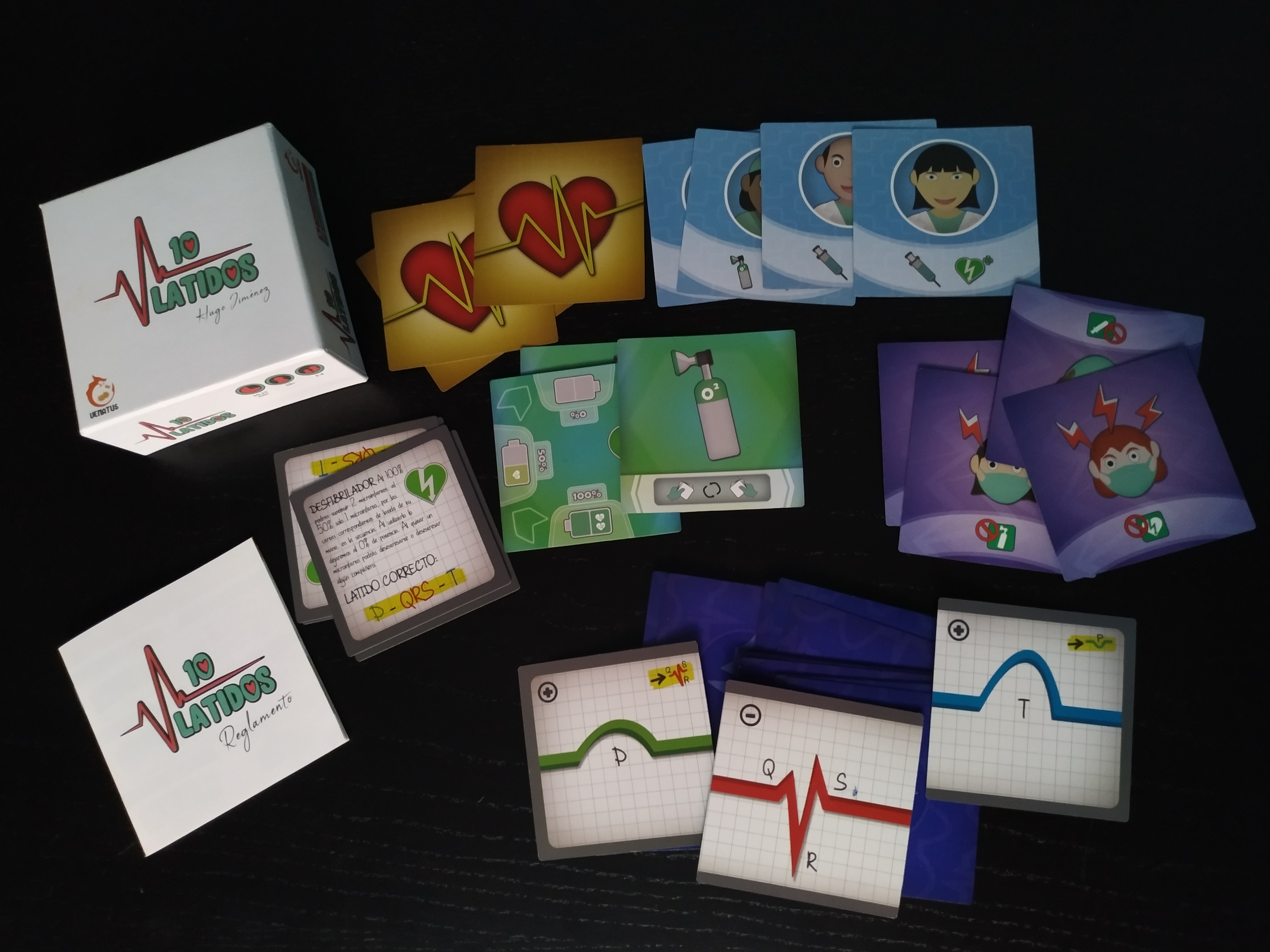 En el juego de mesa 10 latidos tenemos que ser capaces, entre todos los jugadores, de reanimar a un paciente que ha llegado a nuestro hospital y que está en parada cardiorespiratoria. Usando nuestras cartas y las de la mesa, deberemos conseguir durante los 10 próximos latidos de su corazón poder estabilizarlo sin que sufra microinfartos.