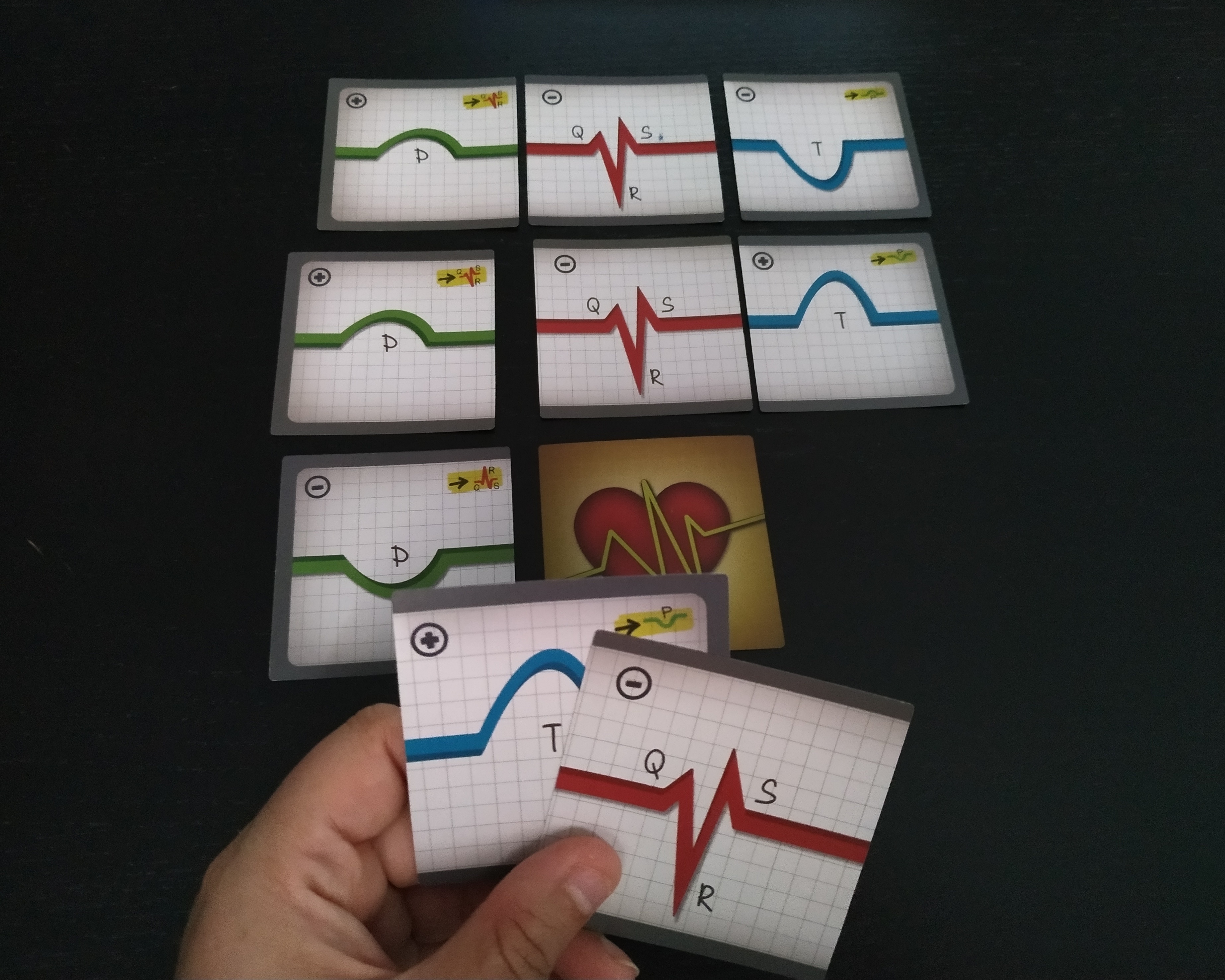 Con las cartas de nuestra mano, en cada turno, iremos colocando las ondas en ese orden para conformar cada uno de los latidos del electrocardiograma.