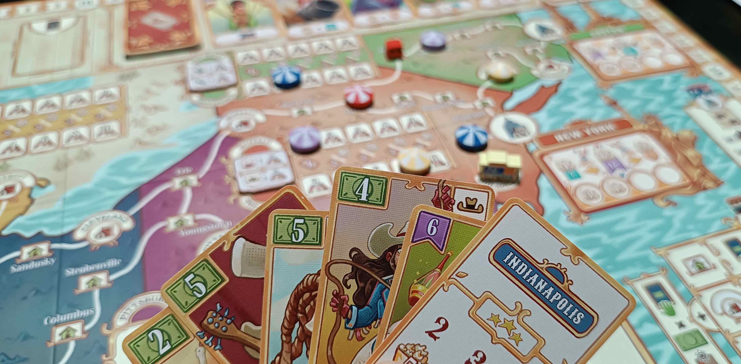 - EL CIRCO BARNUM EMPIEZA EN INDIANÁPOLIS: Si somos dos jugadores, al preparar la partida, taparemos las regiones de Boston y Chicago. La caravana Barnum empezará en Indianápolis y se moverá en sentido horario. Puntuaremos las regiones en este orden: Nueva York, Washington D.C. e Indianápolis.
