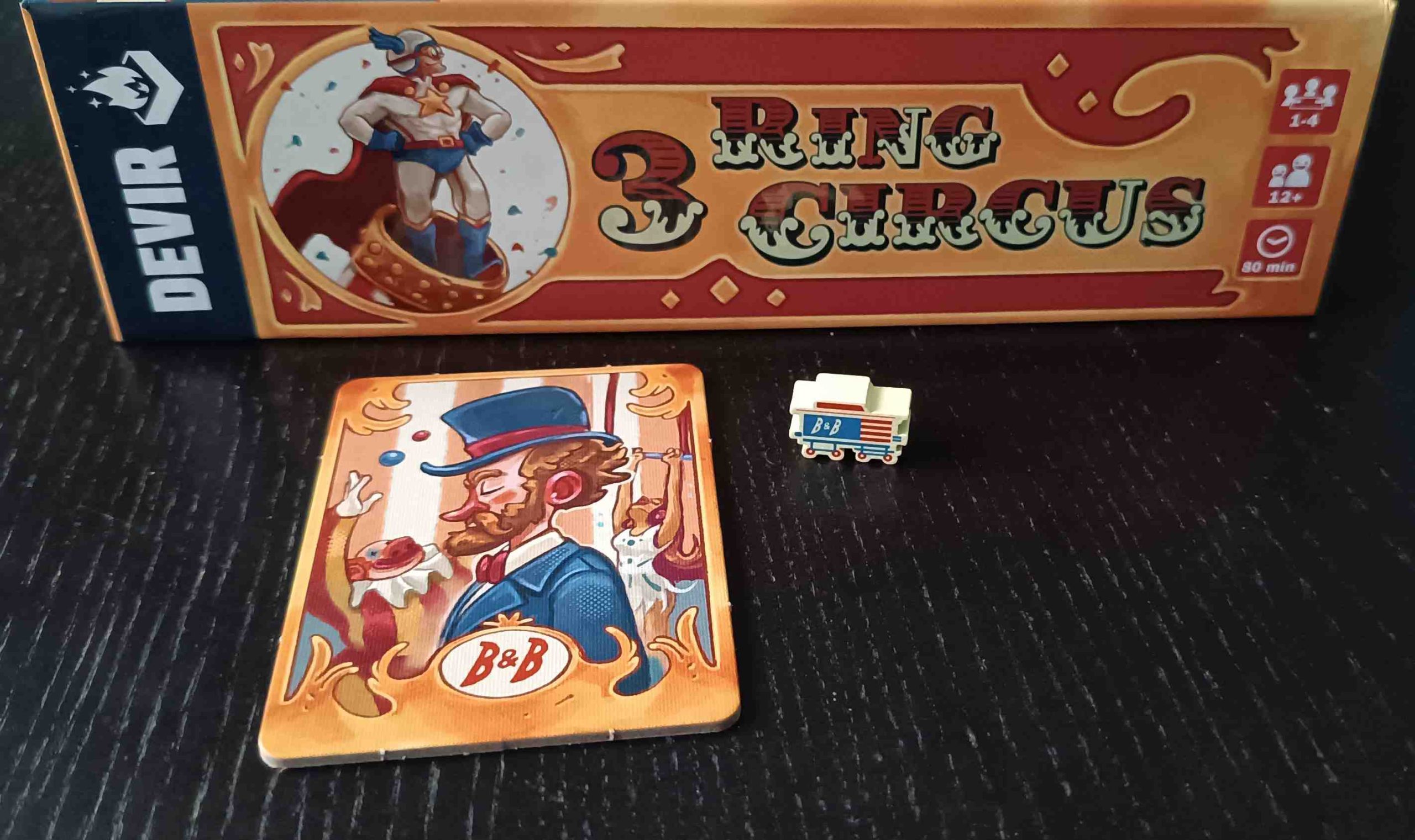 Por ir terminando, 3 Ring Circus es un eurogame de original temática catalogado como familiar plus que tiene una puesta en mesa muy atractiva gracias a la calidad y colorido de sus componentes. Tiene un peso medio y nos ofrece poder hacer sencillas acciones durante nuestro turno mientras vamos dando forma a la estrategia que queremos seguir para que nuestra compañía de circo sea la más próspera del lugar.