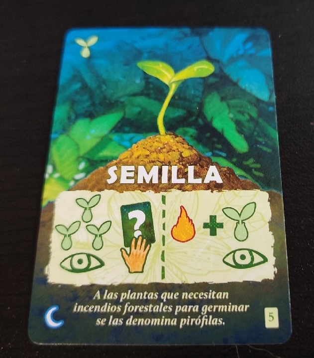 - Semillas: Si el jugador tiene alguna carta de semilla, deberá robar 3 cartas de semilla (más una por cada carta de incendio) y se podrá quedar una por cada semilla que tenga.