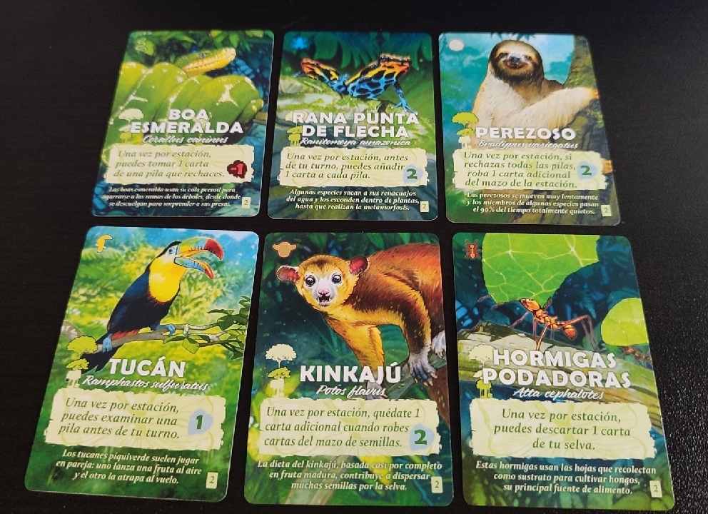 - Avanzada: Se añaden las cartas avanzadas a las cartas de selva en distintas combinaciones que permiten aumentar la diversidad de las selvas.