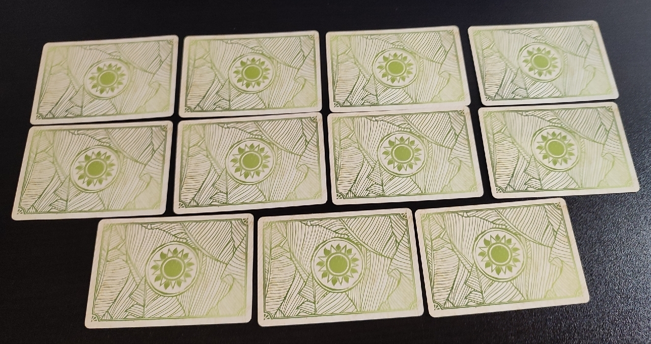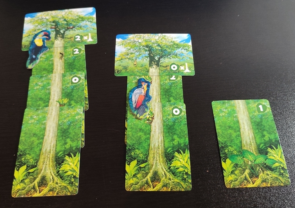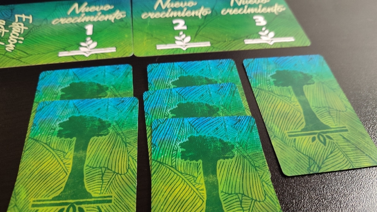 - Se las queda: Añade todas las cartas a su selva y coge una carta del mazo y la deja en la pila de crecimiento 2.