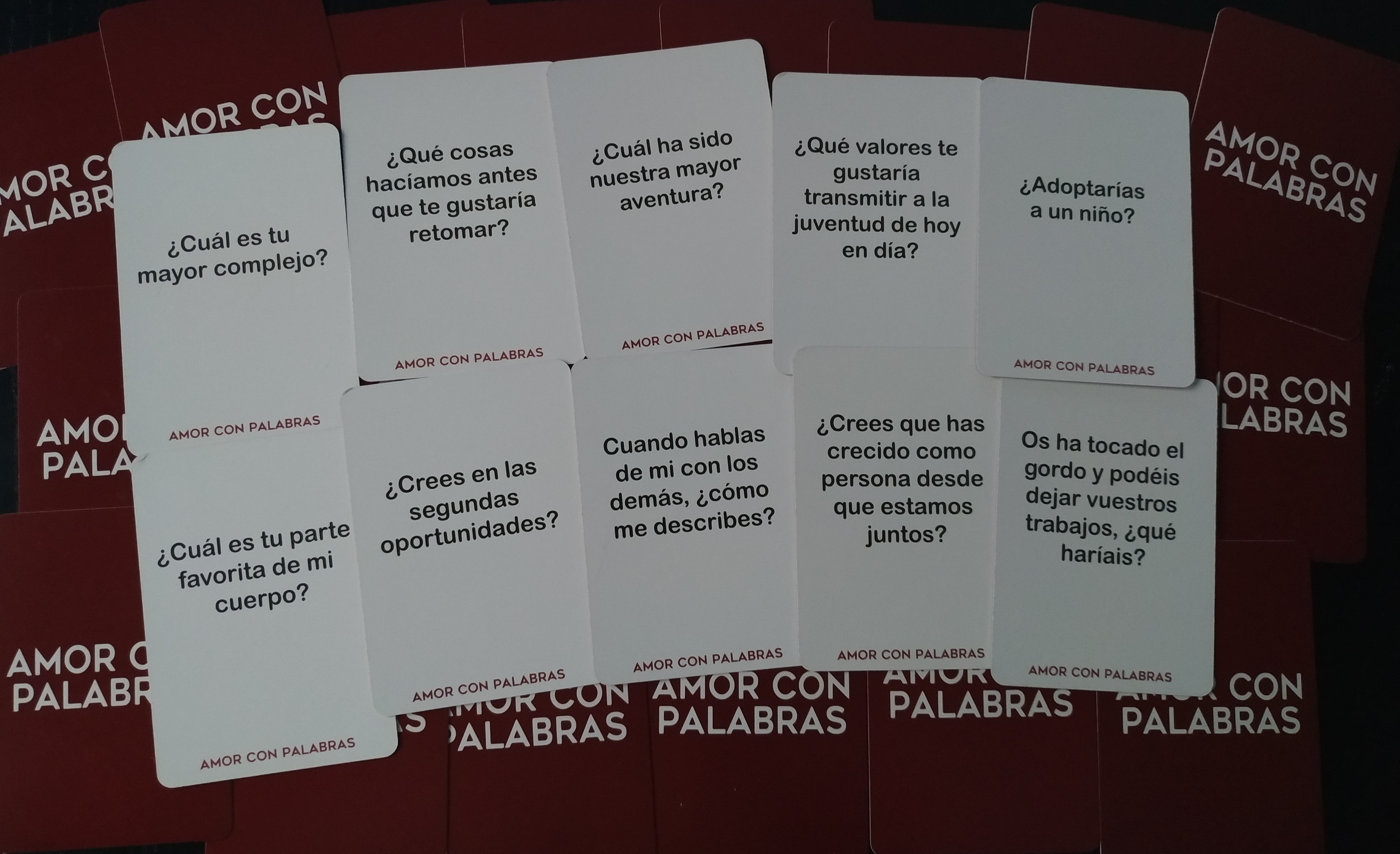 - ❤️ CÓMO SE JUEGA: El juego no puede ser mas simple. Encontraréis 100 cartas con preguntas que darán pie a entablar conversaciones sobre vuestro pasado, futuro, sentimientos, dinero, deseos,...los temas más importantes para una relación inmejorable. No hace falta tener otra versión de Amor con Palabras para jugar a esta.