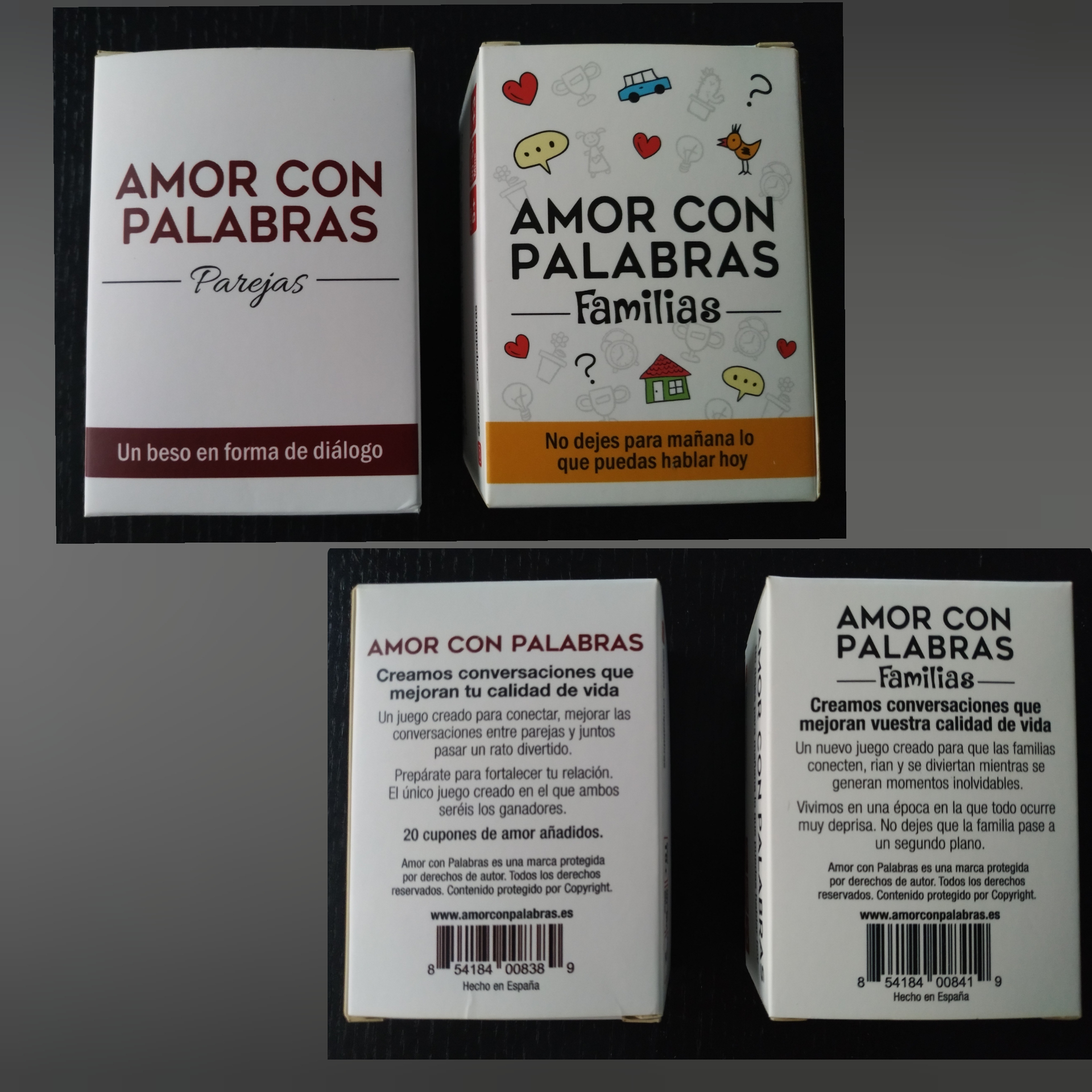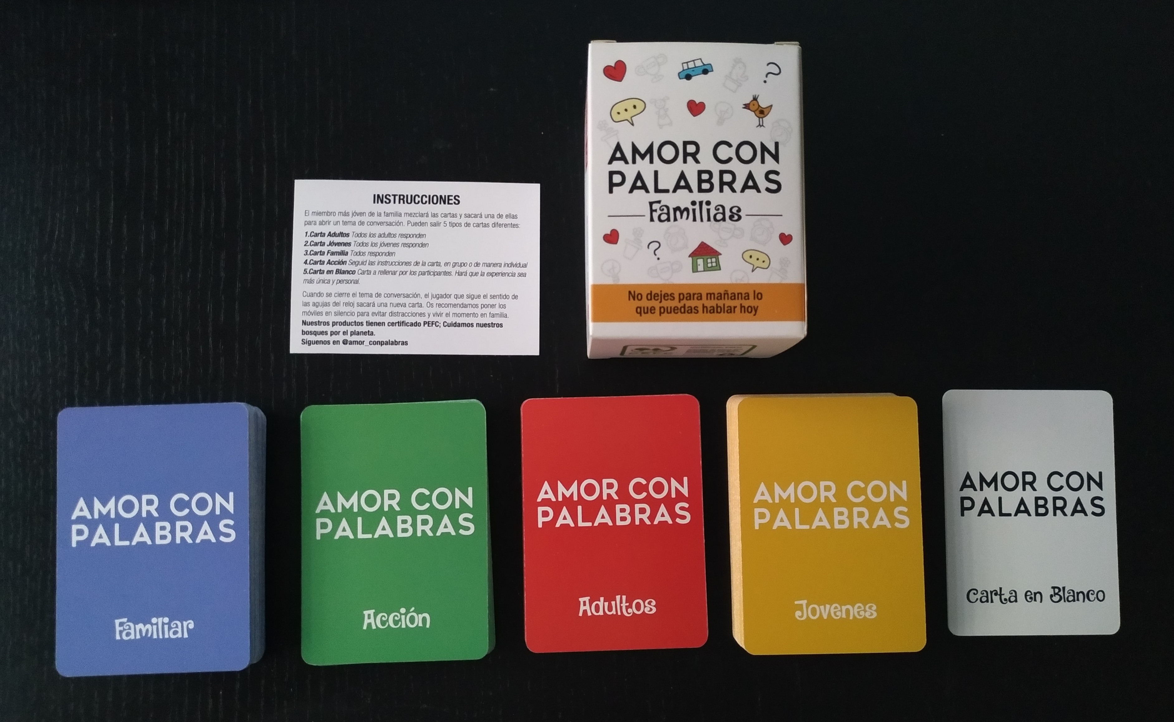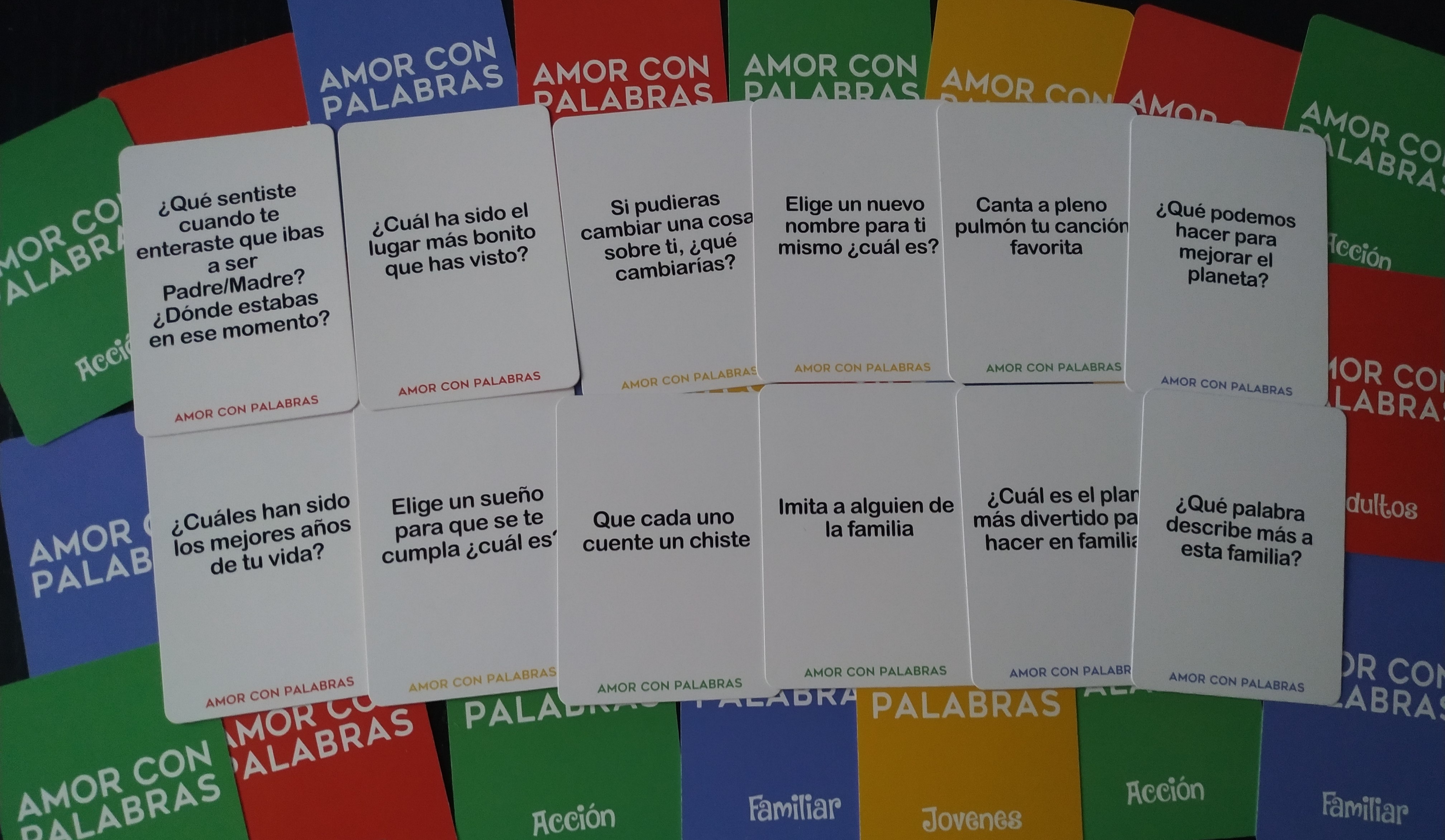 - 👪 AMOR CON PALABRAS: Creamos juegos de mesa familiares donde todos salimos ganando. La versión familia esta diseñada para padres e hijos, abuelos y nietos. Conoce mejor a tus hijos y ayúdales a que ellos te conozcan mejor a ti. Un juego no sólo divertido sino también educativo, que mejora la atención y la capacidad de escuchar y comprender a los demás.