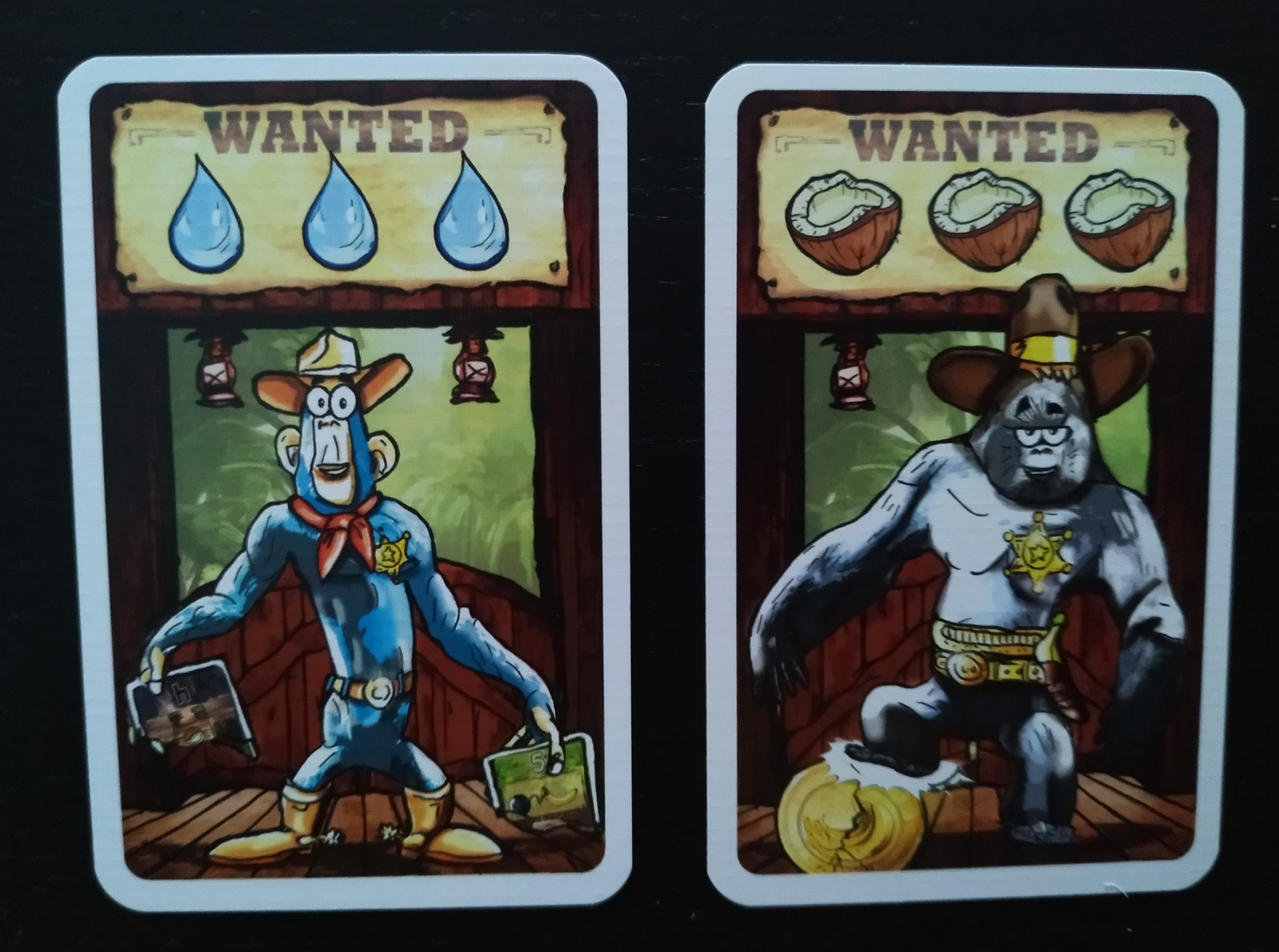 Cada jugador coge una carta de personaje y 4 cartas de acción, todas bocabajo. Podemos verlas pero no deben enseñarse al resto de jugadores. Además, cada jugador recibe 3 bananas y 5 palos como recursos iniciales.