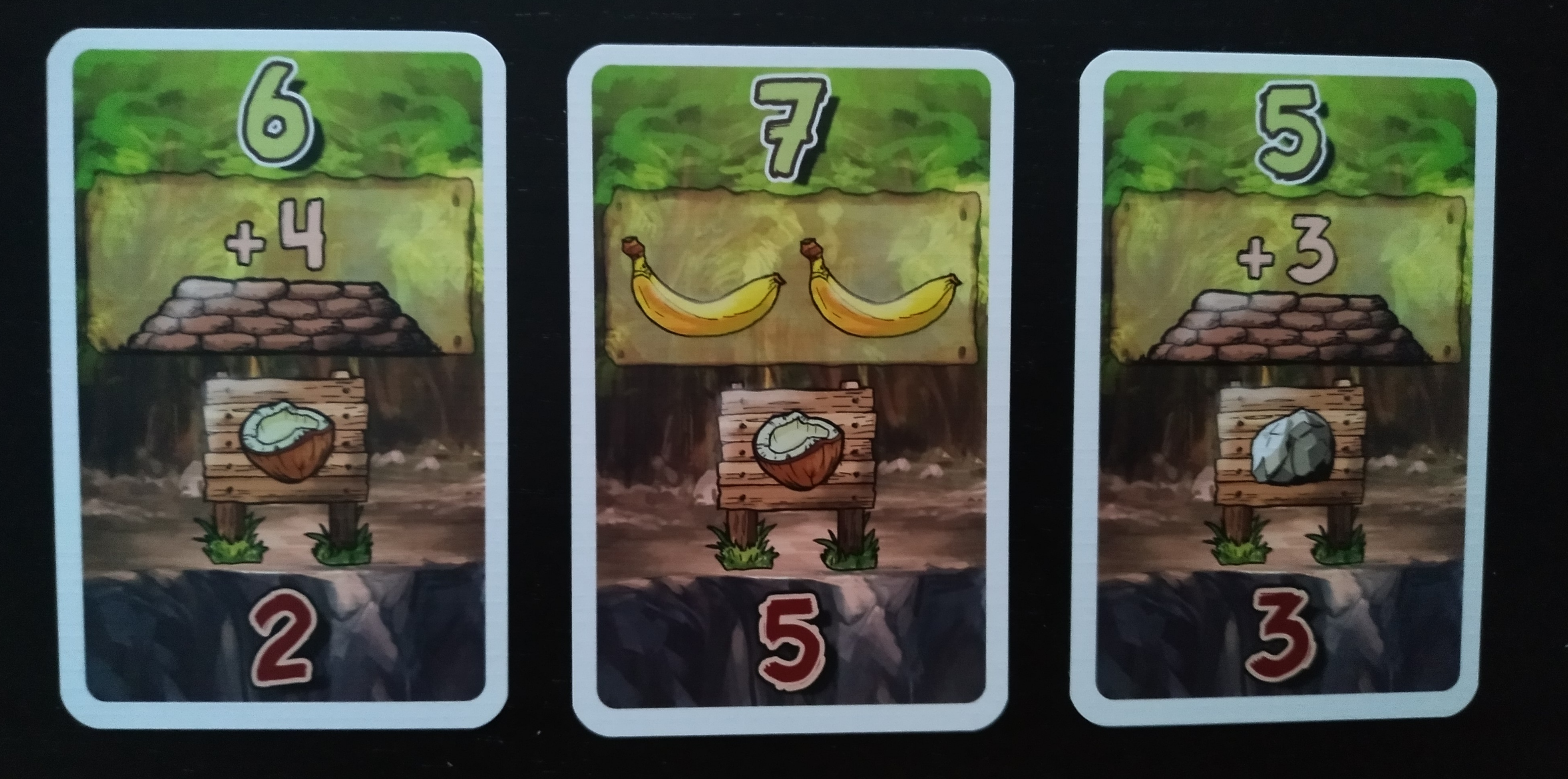Si en la carta activada vemos palos o bananas, ese jugador recibe dicho número de recursos. Si se ve un punto de victoria, recibirá ese punto de victoria.