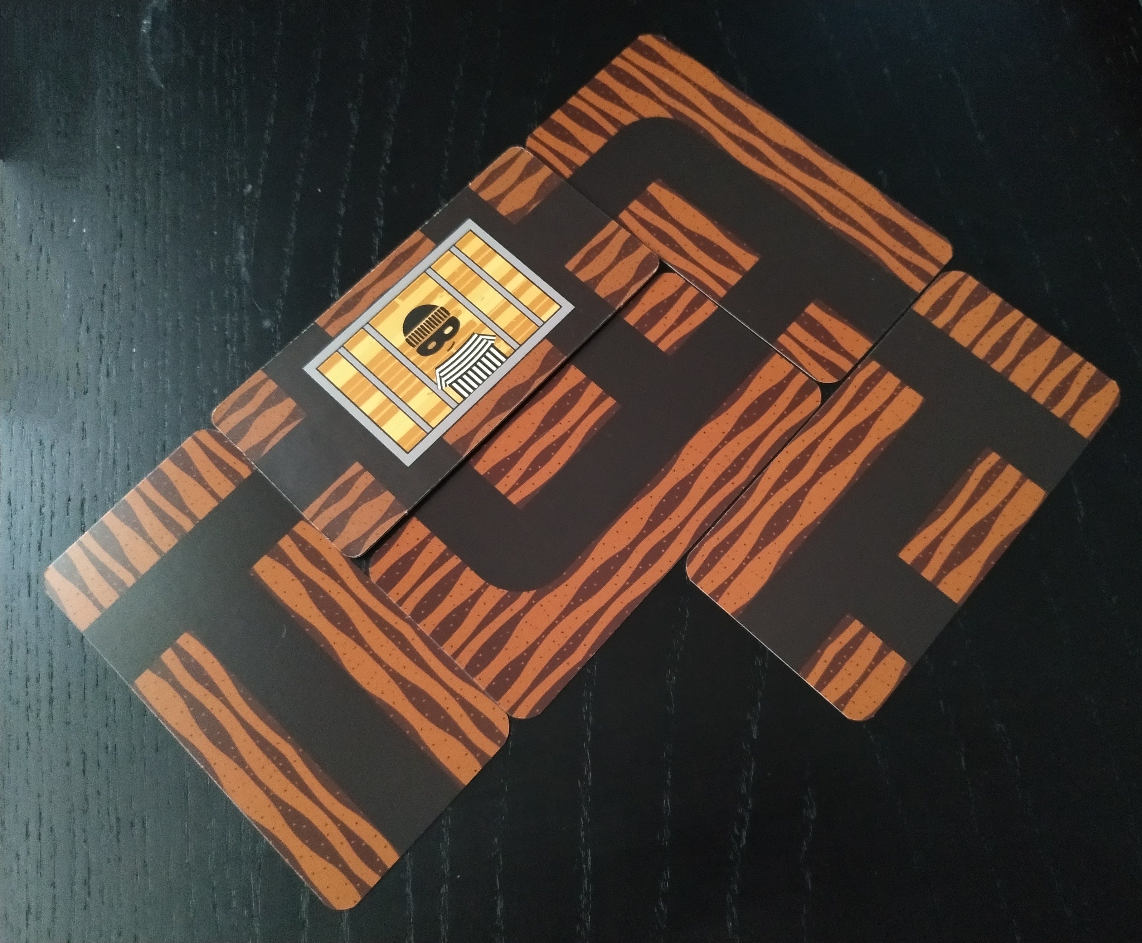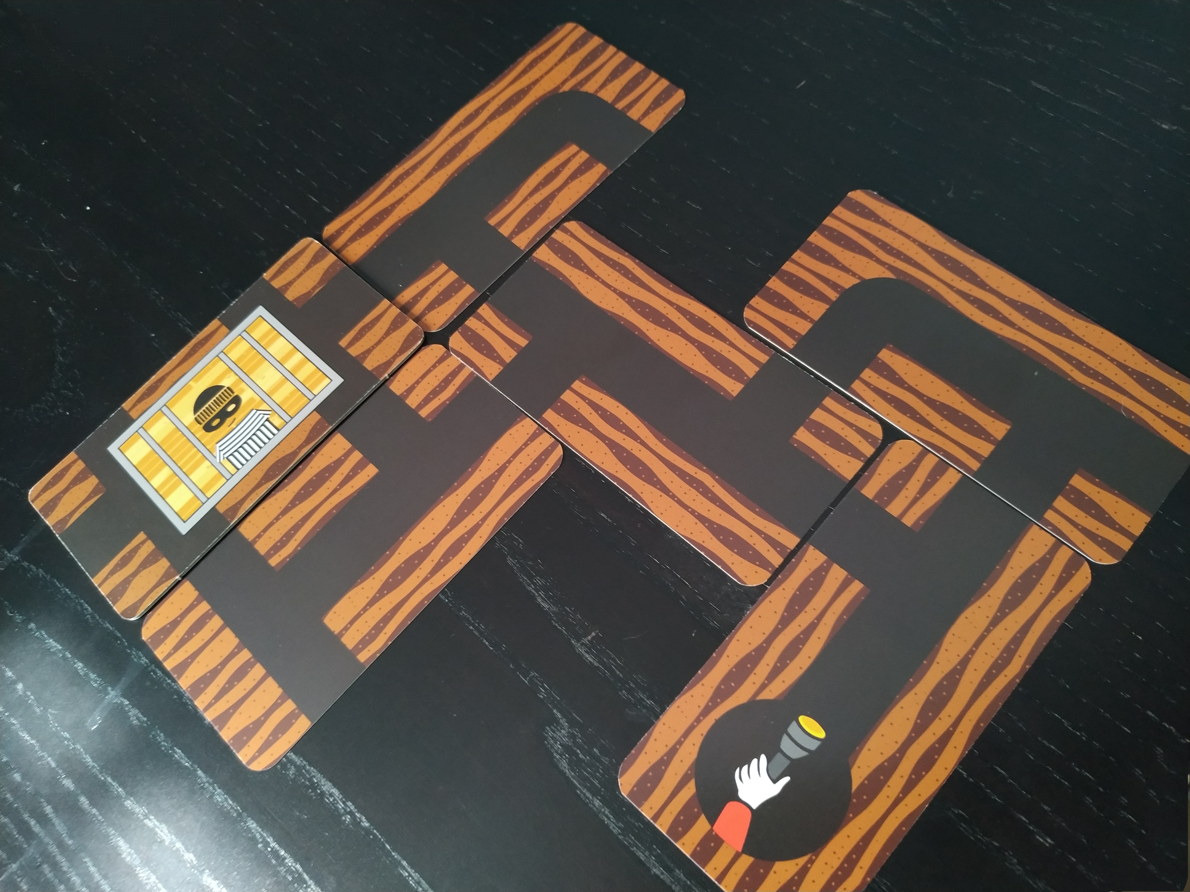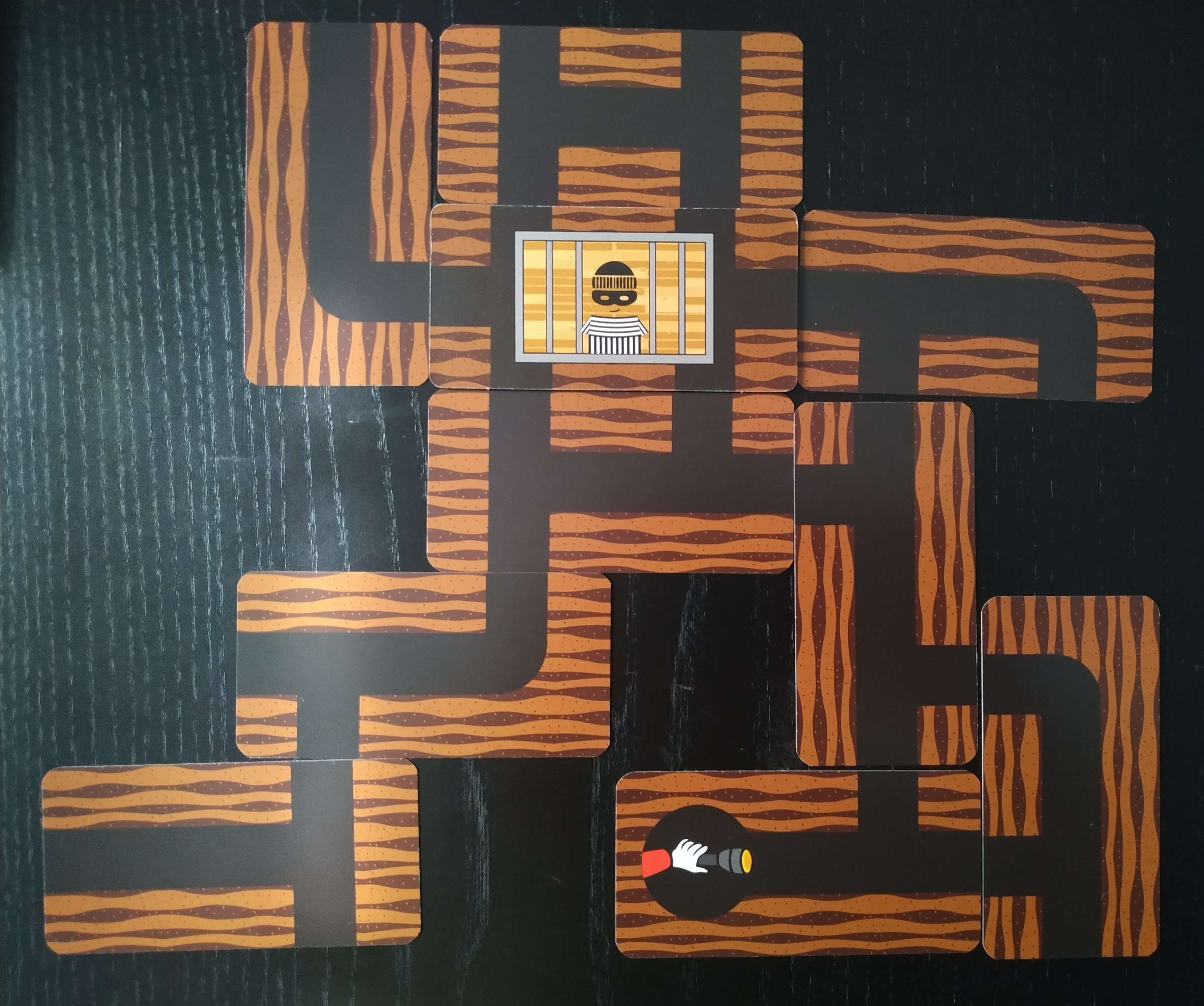 Como ya hemos visto es cooperativo por lo que deberemos jugarlo en equipo e ir poniéndonos de acuerdo para no dejar escapar al bandido de su celda. La mecánica de juego es directa: con cartas de nuestra mano que iremos reponiendo al robar del mazo, deberemos encajarlas para que los caminos coincidan hasta que alguno de nosotros pueda poner una de ellas que cierre el laberinto que hemos creado. Sencillo de explicar, de aprender y de jugar, lo que se agradece muchas veces para poder ir directamente a lo que queremos: divertirnos.
