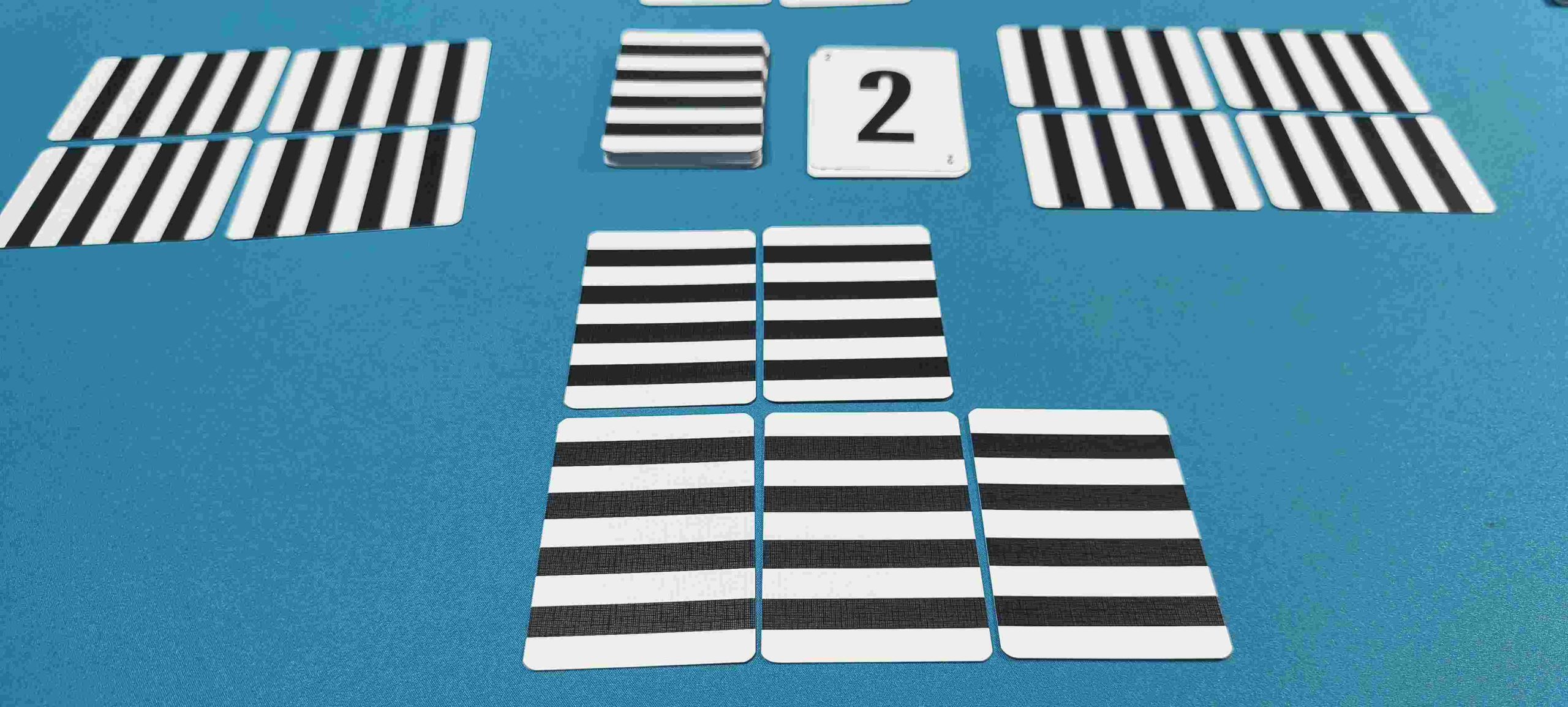 - Antes de que comience la partida, cada jugador puede mirar en secreto solo sus dos cartas más cercanas (las que están en la parte inferior del cuadrado).