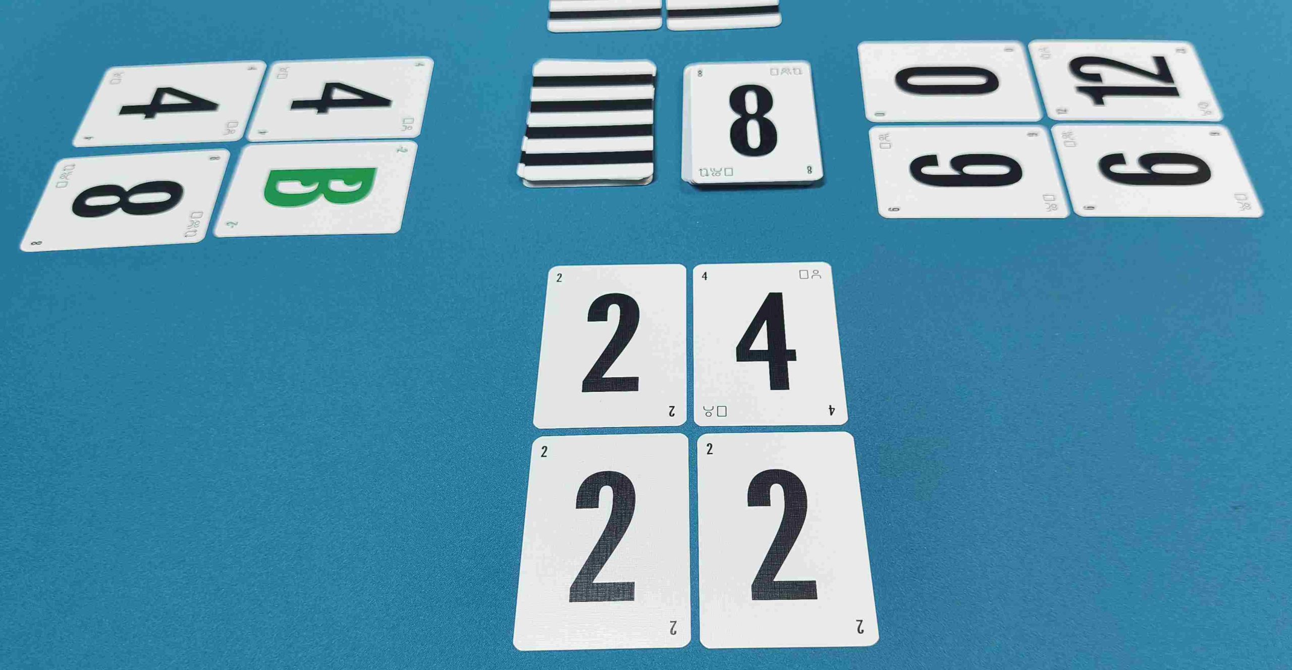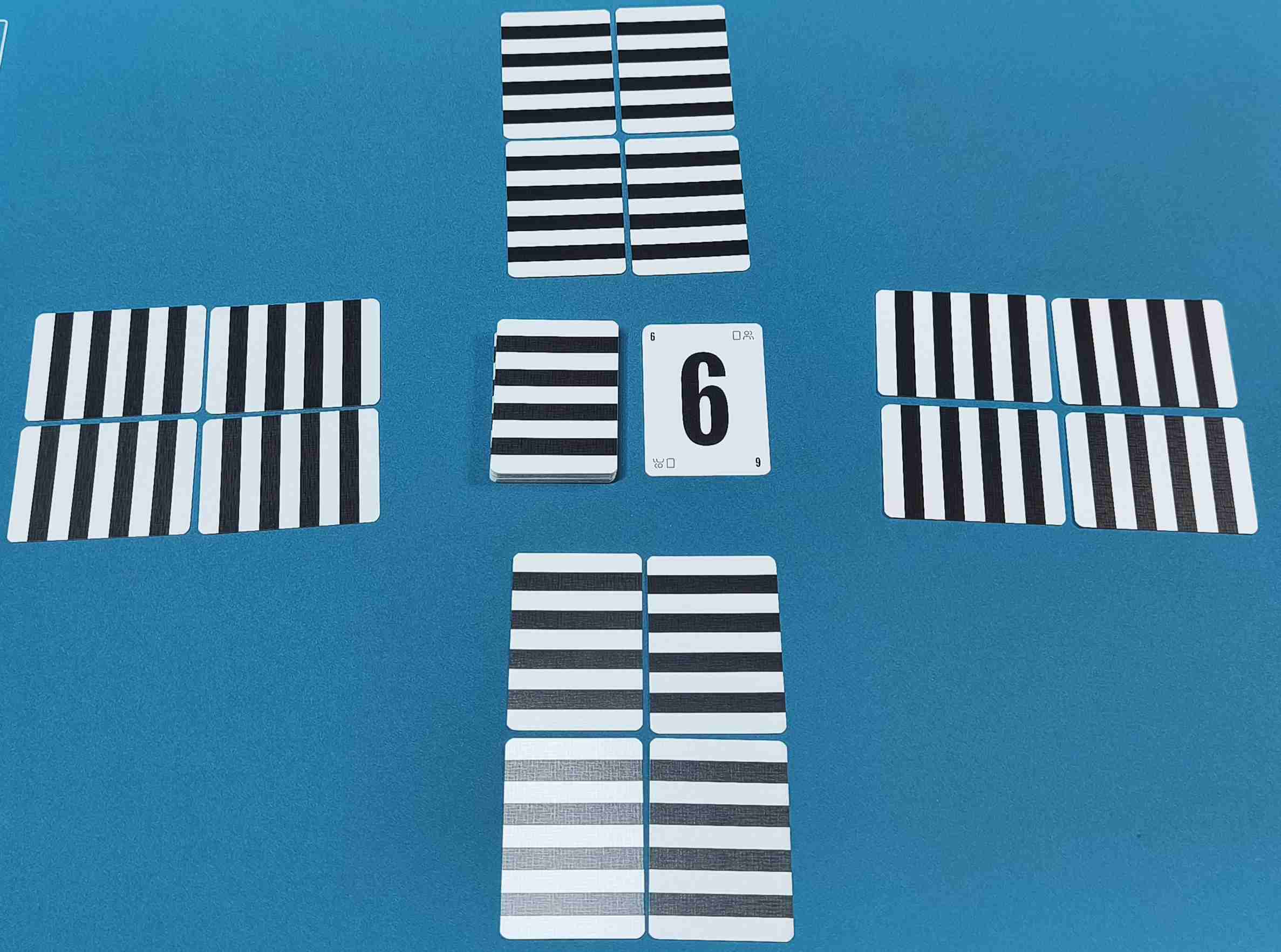 - Cada jugador recibe 4 cartas boca abajo, que deben ser dispuestas en forma de cuadrado frente a ellos.