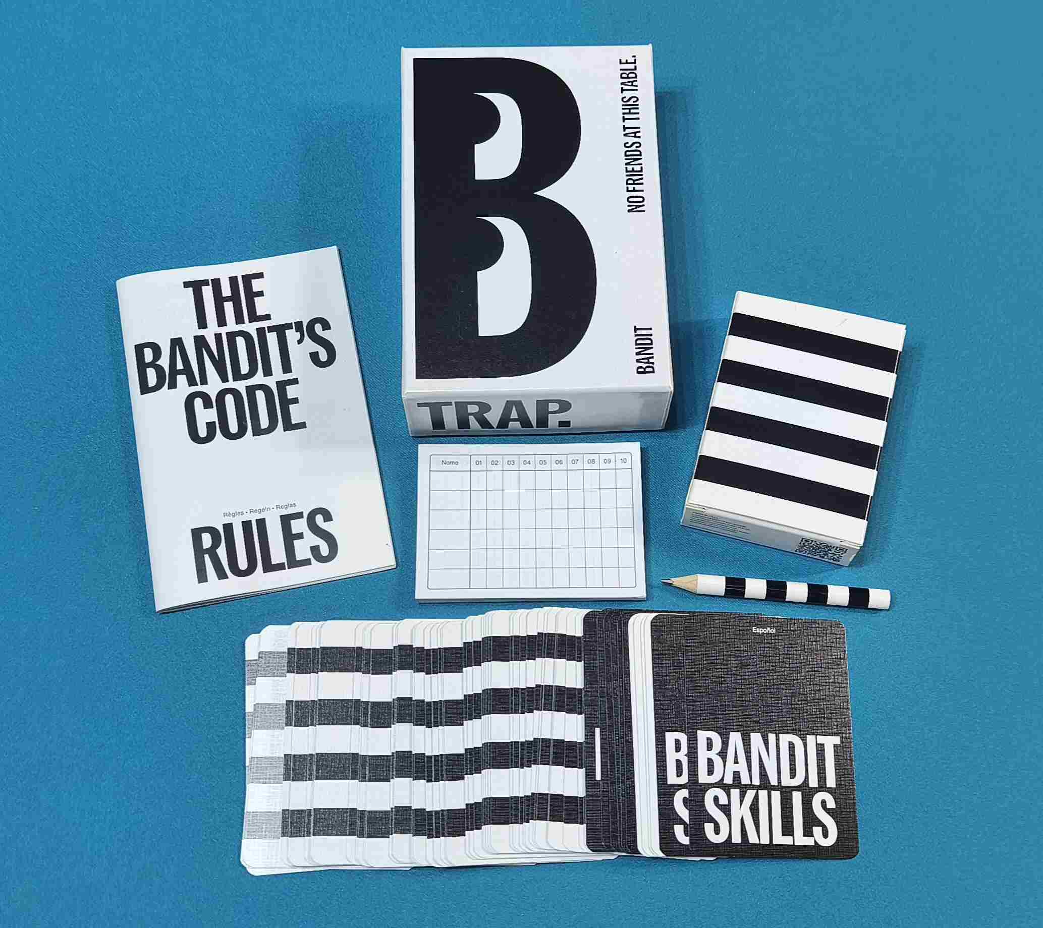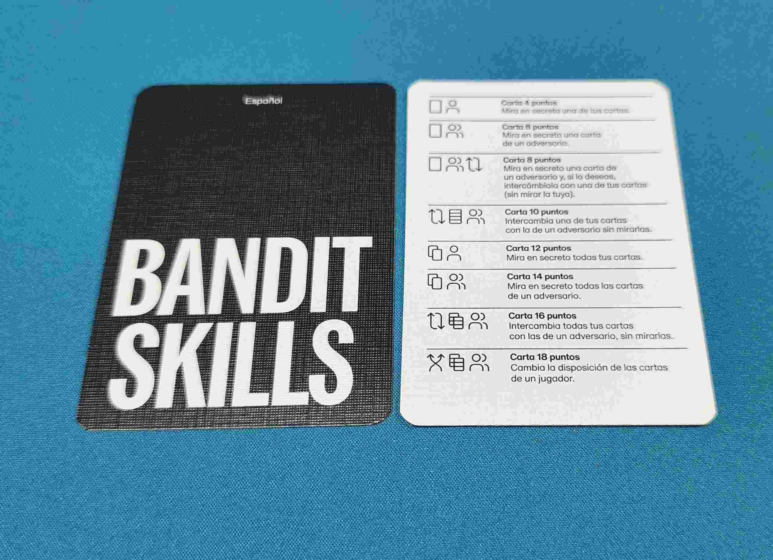 Bandit es un rápido juego de cartas que pondrá a prueba la astucia, la estrategia y la rapidez en la toma de decisiones de los jugadores con un único objetivo: ser el jugador que menos puntos tenga.