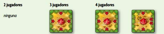 Antes de empezar la partida, deberemos, dependiendo del número de jugadores que seamos, devolver o no a la caja, alguna de estas losetas de la siguiente manera: