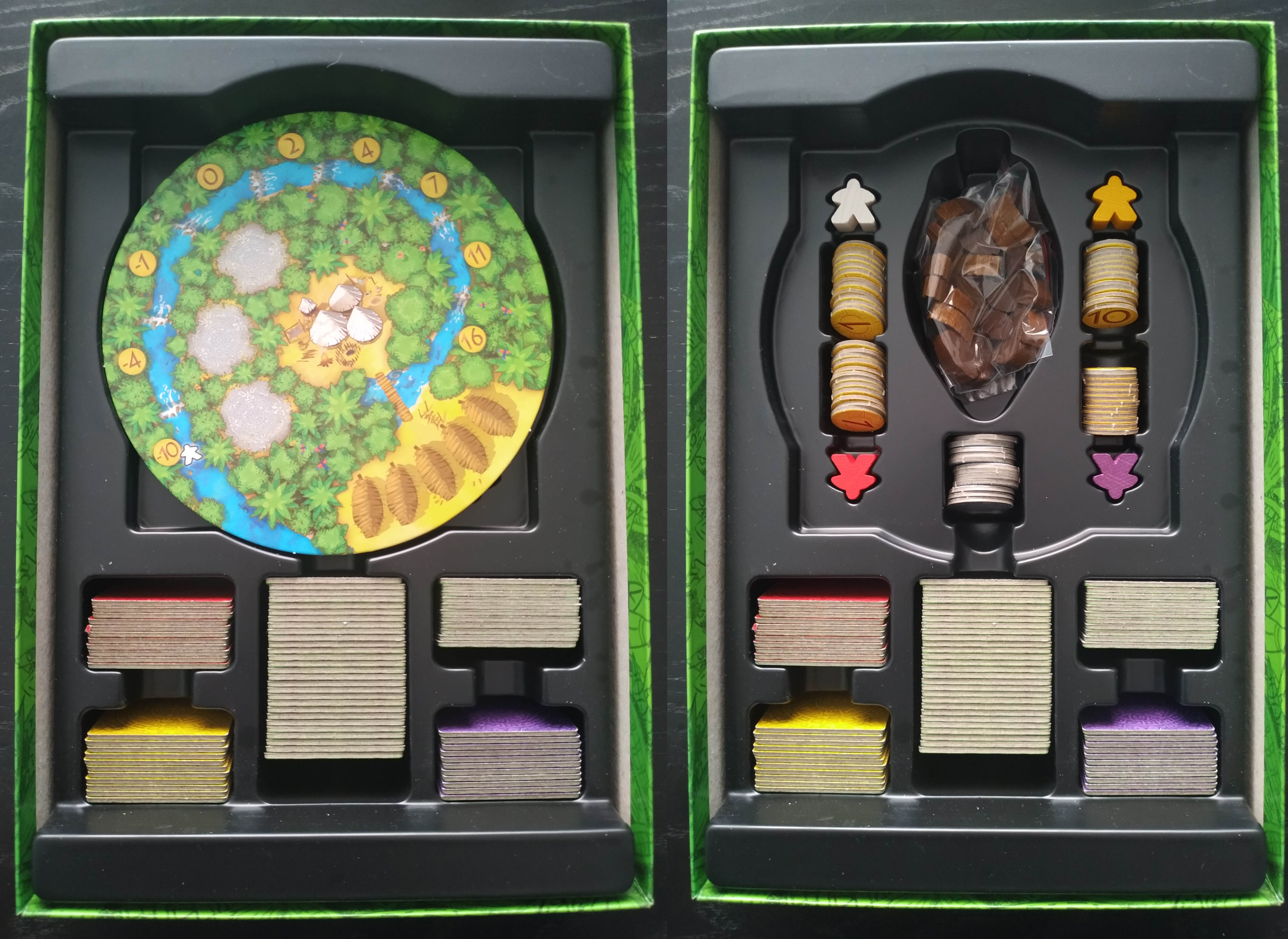 Necesitaremos una mesa o superficie plana y estable para poder jugarlo ya que tanto la disposición de losetas de selva y recolectores como los tableros individuales de los jugadores necesitarán su espacio liso para mantener un orden.