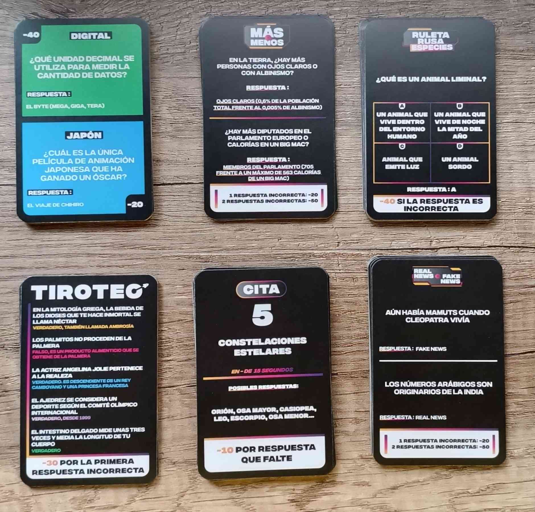 - 🧩 1200 PREGUNTAS VARIADAS: Cartas con preguntas de cultura general, comida, deporte, ciencia, historia, cine, TV... ¡y mucho humor!