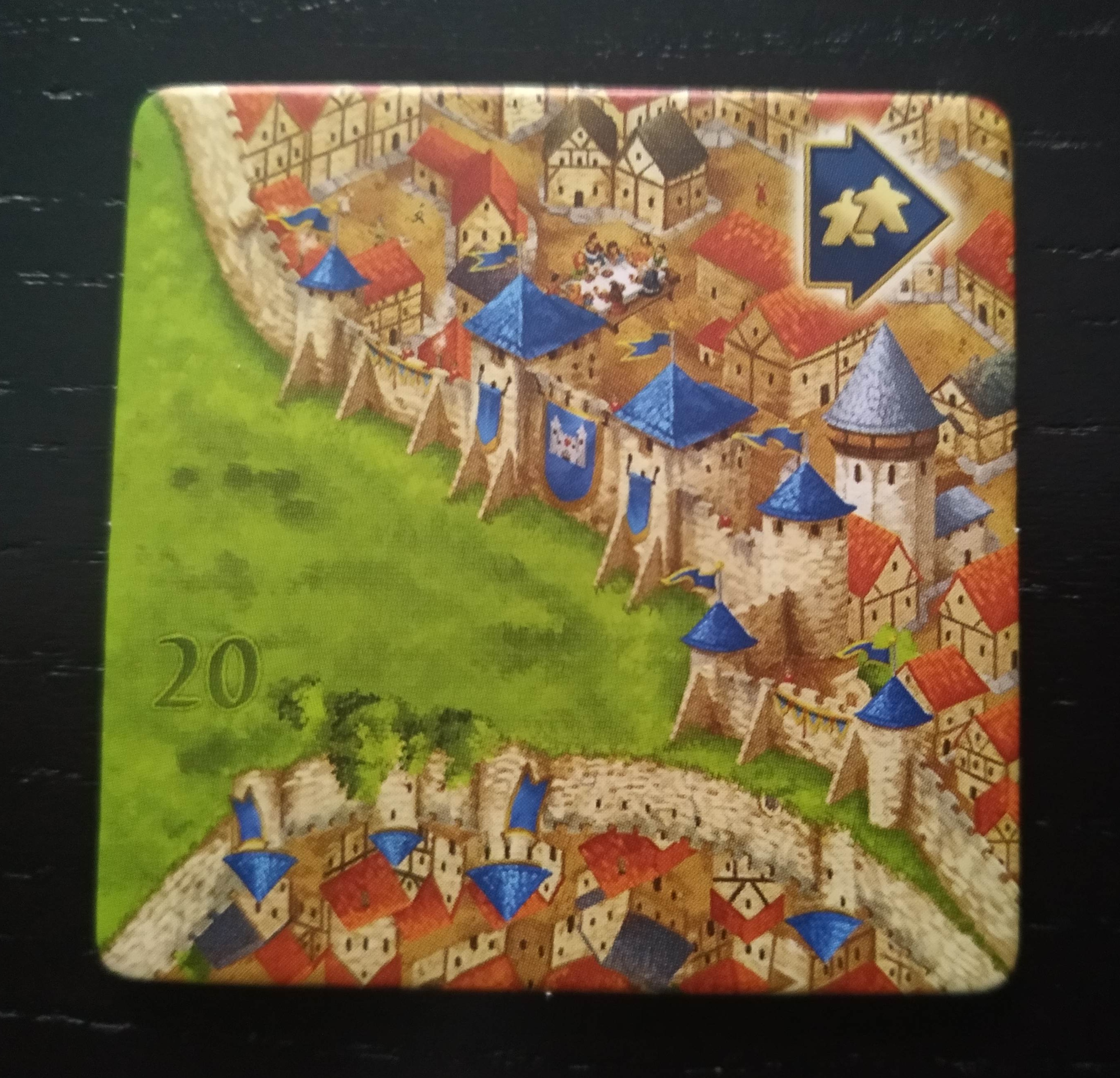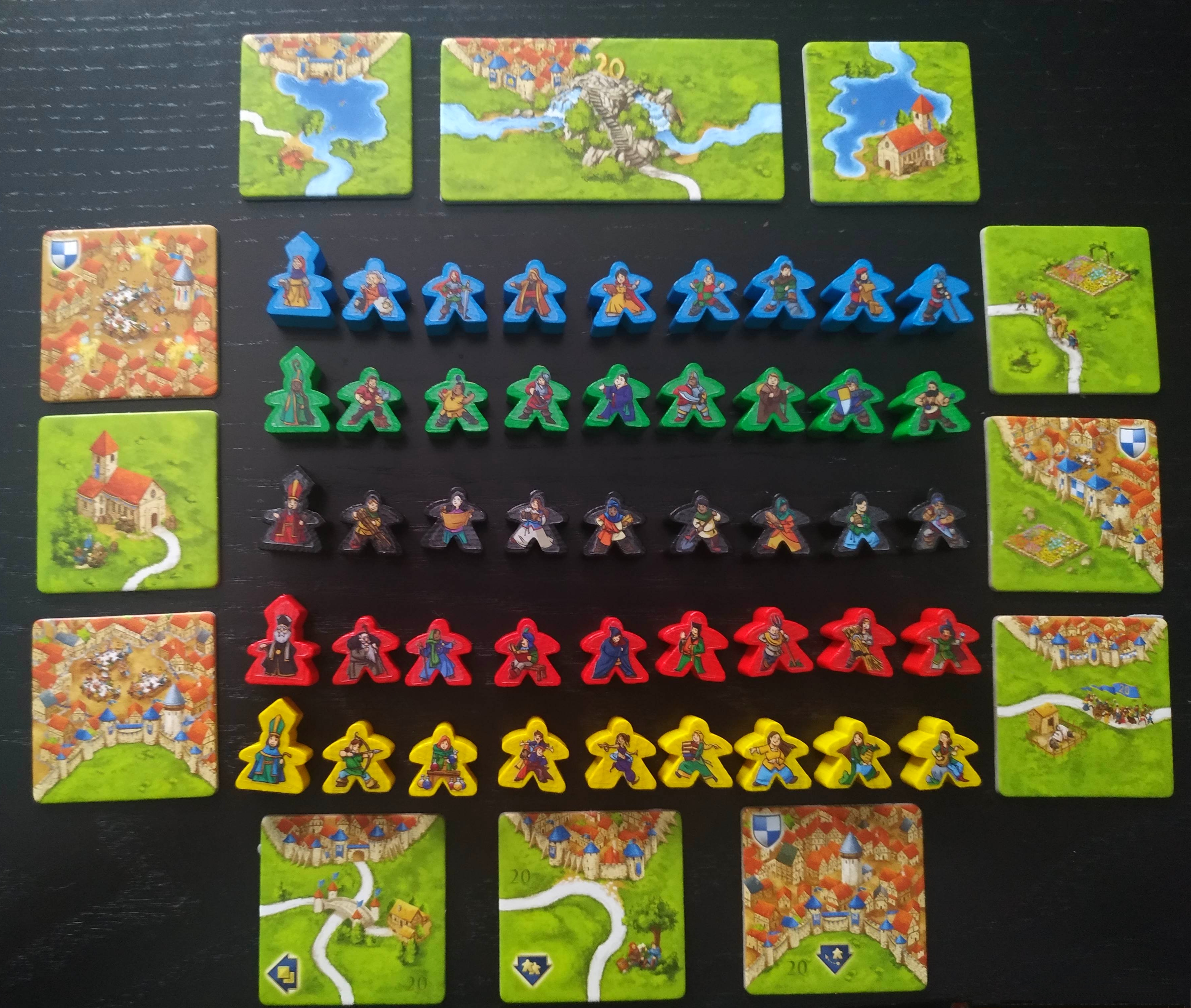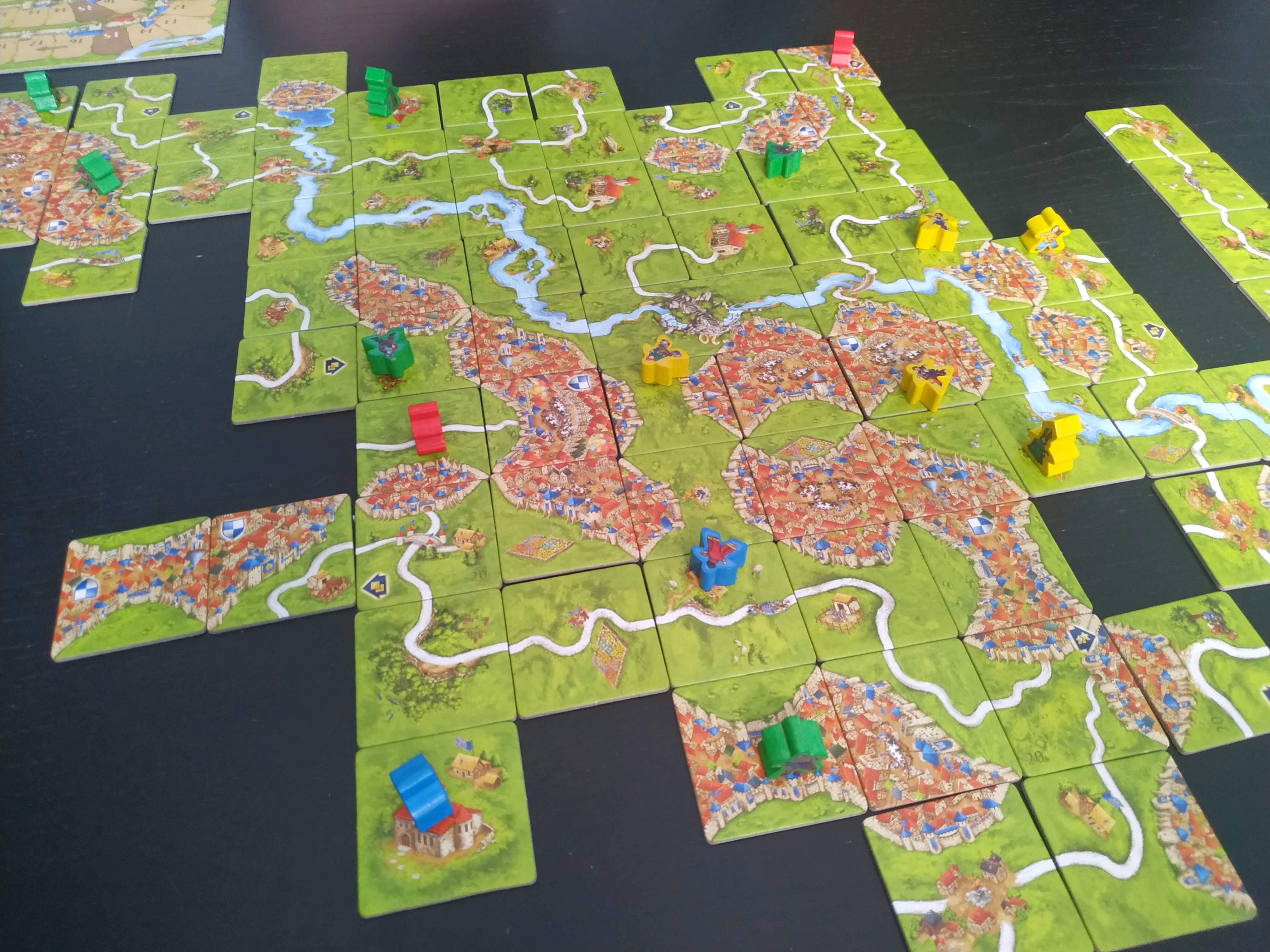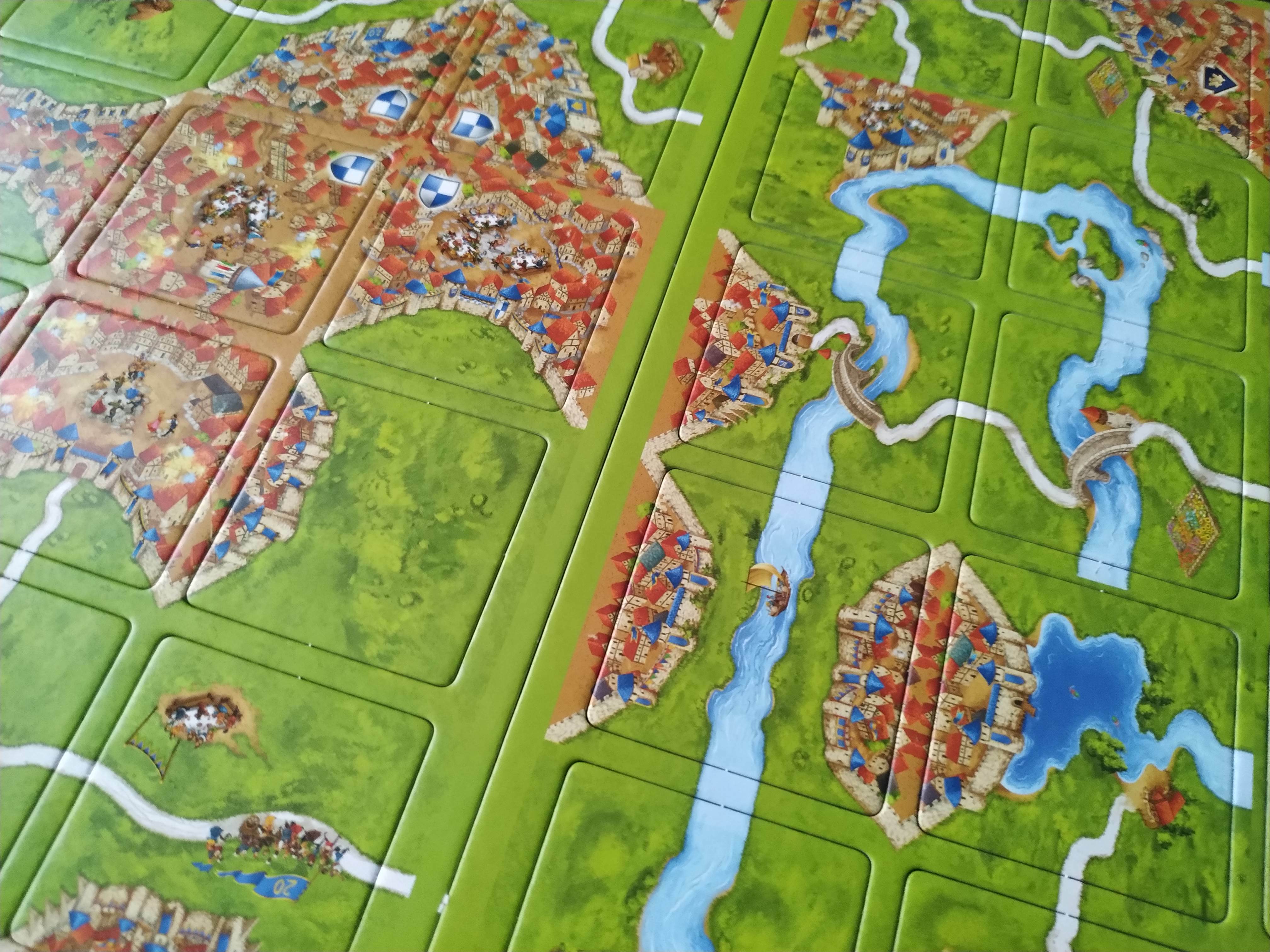 Obviamente, y al igual que siempre, cuando un camino, un monasterio o una ciudad se completan, los jugadores deberán determinar qué jugador tiene la mayoría y recibe los puntos correspondientes en función del número de losetas y escudos que pudieran tener.