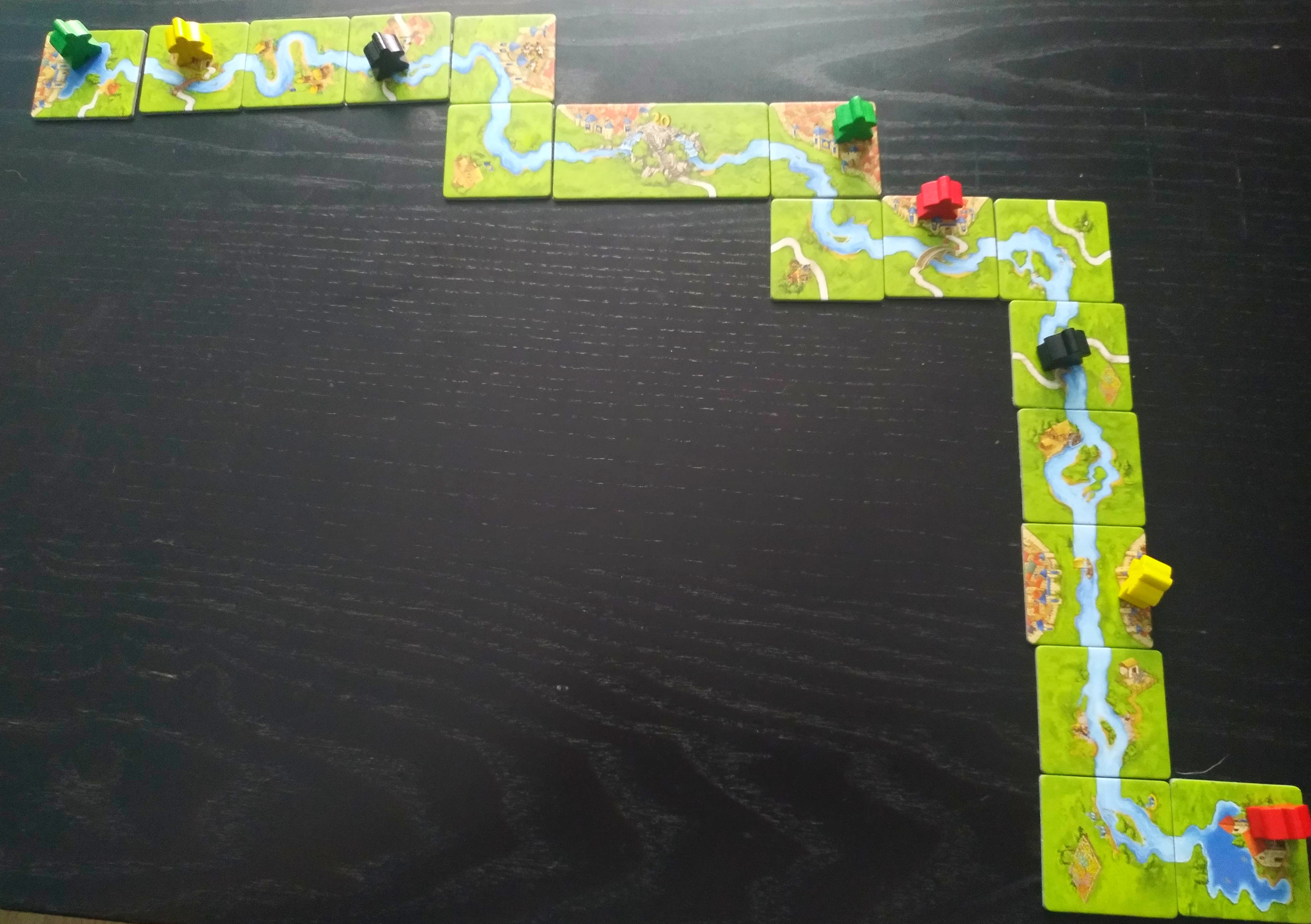 Una vez que se han acabado las losetas de río, las dos siguientes losetas que se deben colocar son las dos del lago. Posteriormente, los jugadores ya podrán robar de la pila de losetas normales.