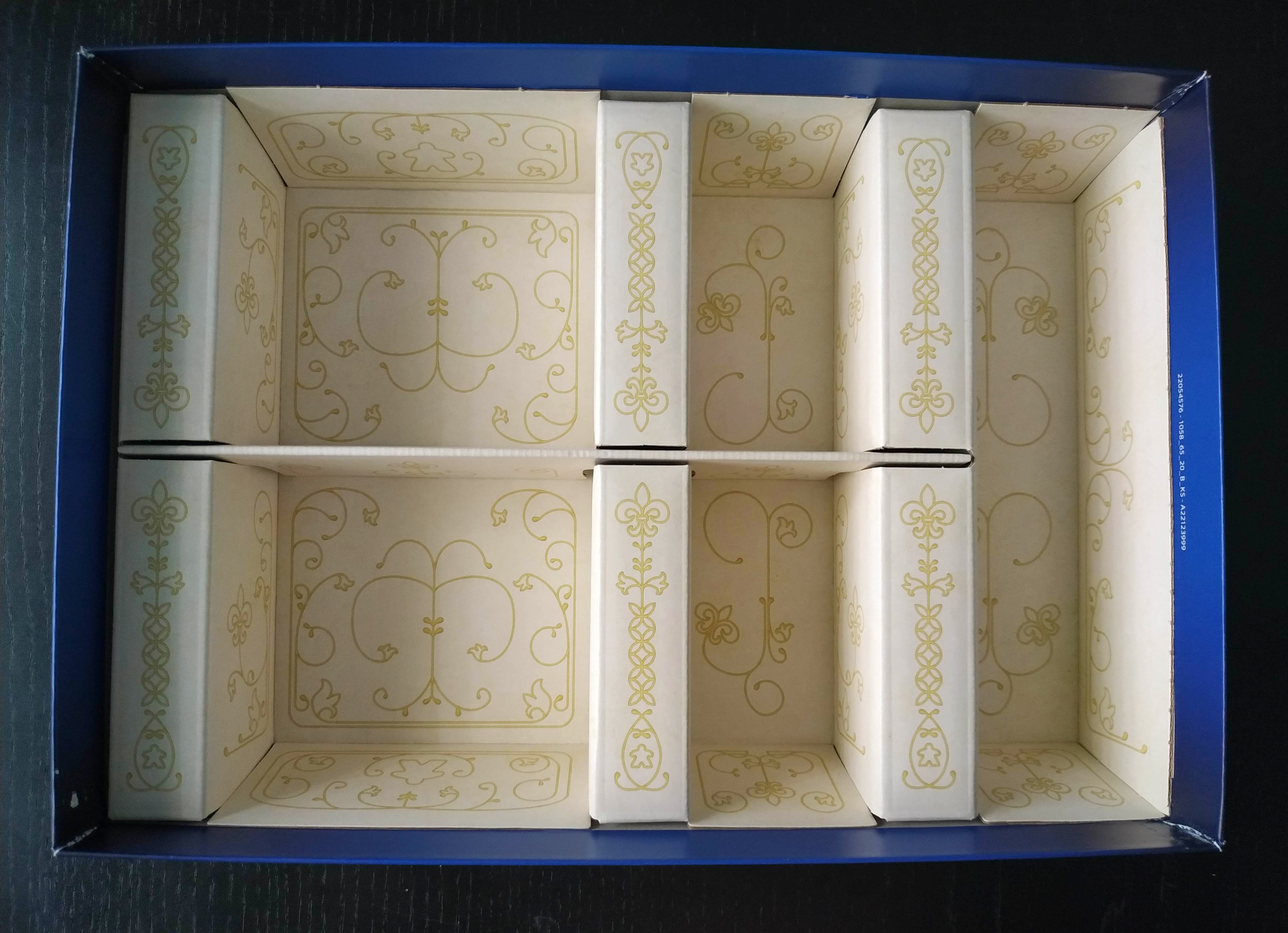 - Acabados de lujo en e inserto, reglamentos, losetas y meeples