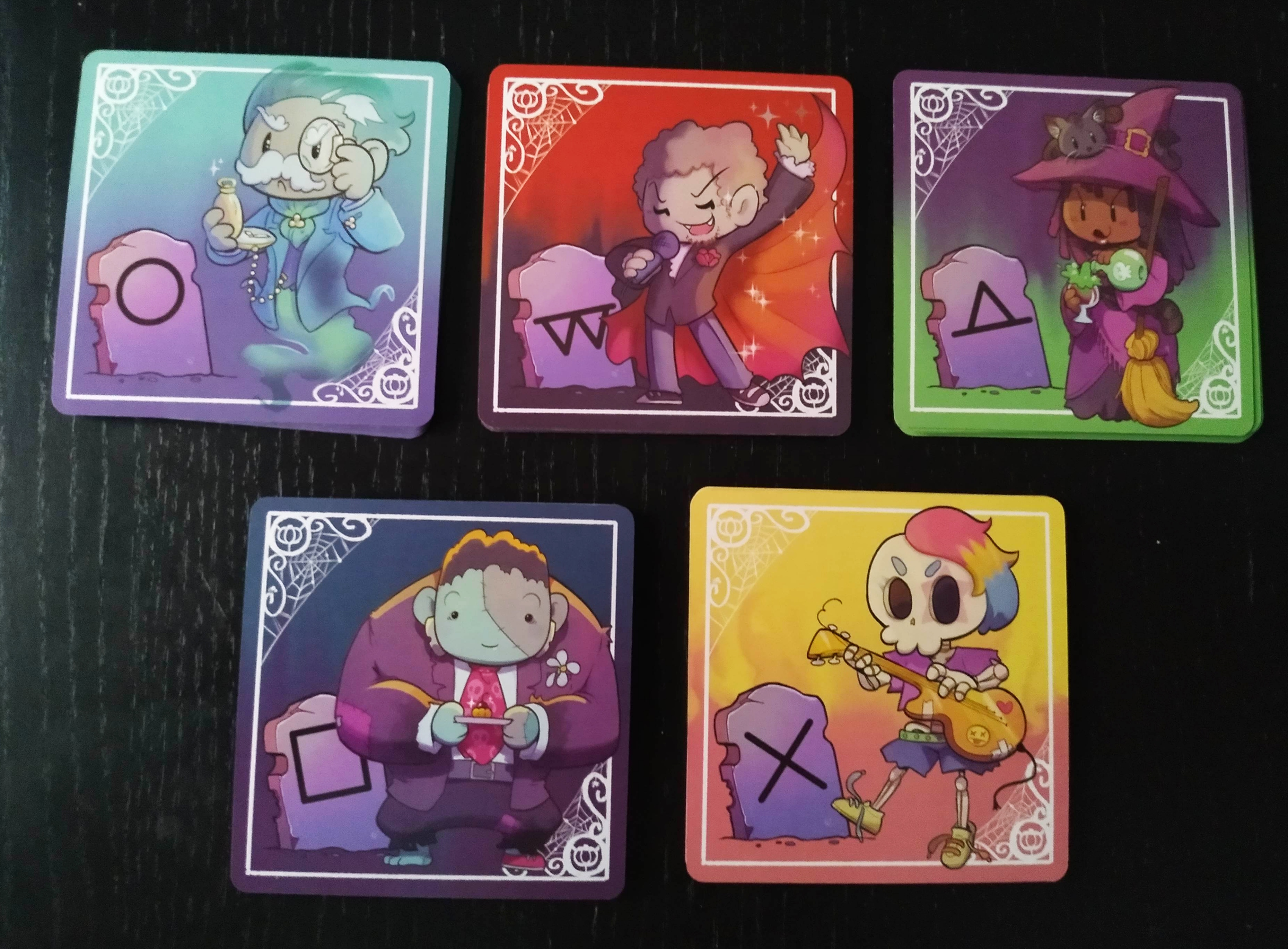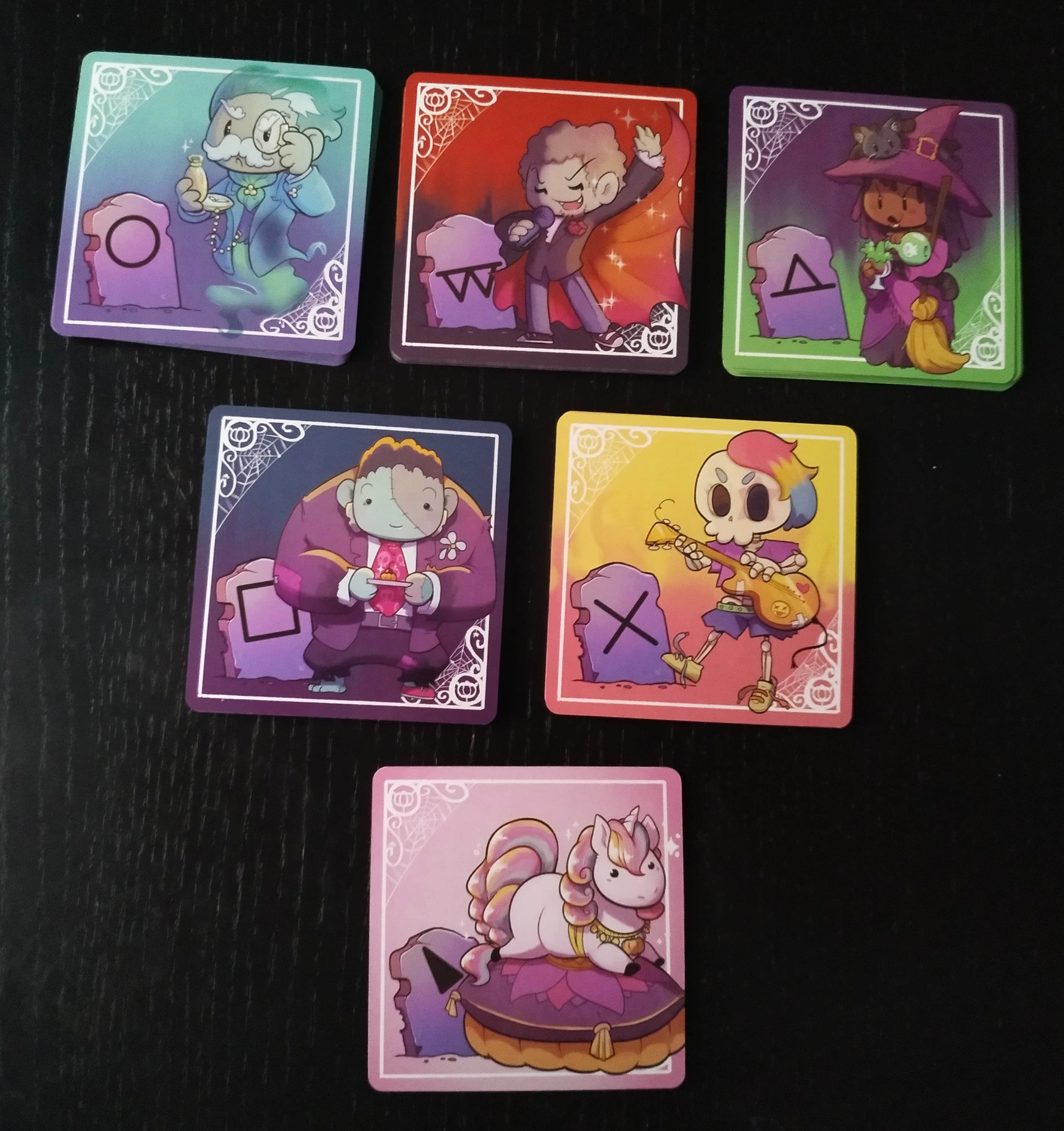 Todos ellos tienen una estética fantástica y muy simpática y se diferencian, no solo obviamente por la ilustración, sino porque cada tipo de monstruo tiene aparejado un símbolo que les representa. Así pues, los esqueletos tienen una X, las brujas un triángulo, los frankesteins un cuadrado, los vampiros unos colmillos, los fantasmas un círculo y los unicornios un cuerno.