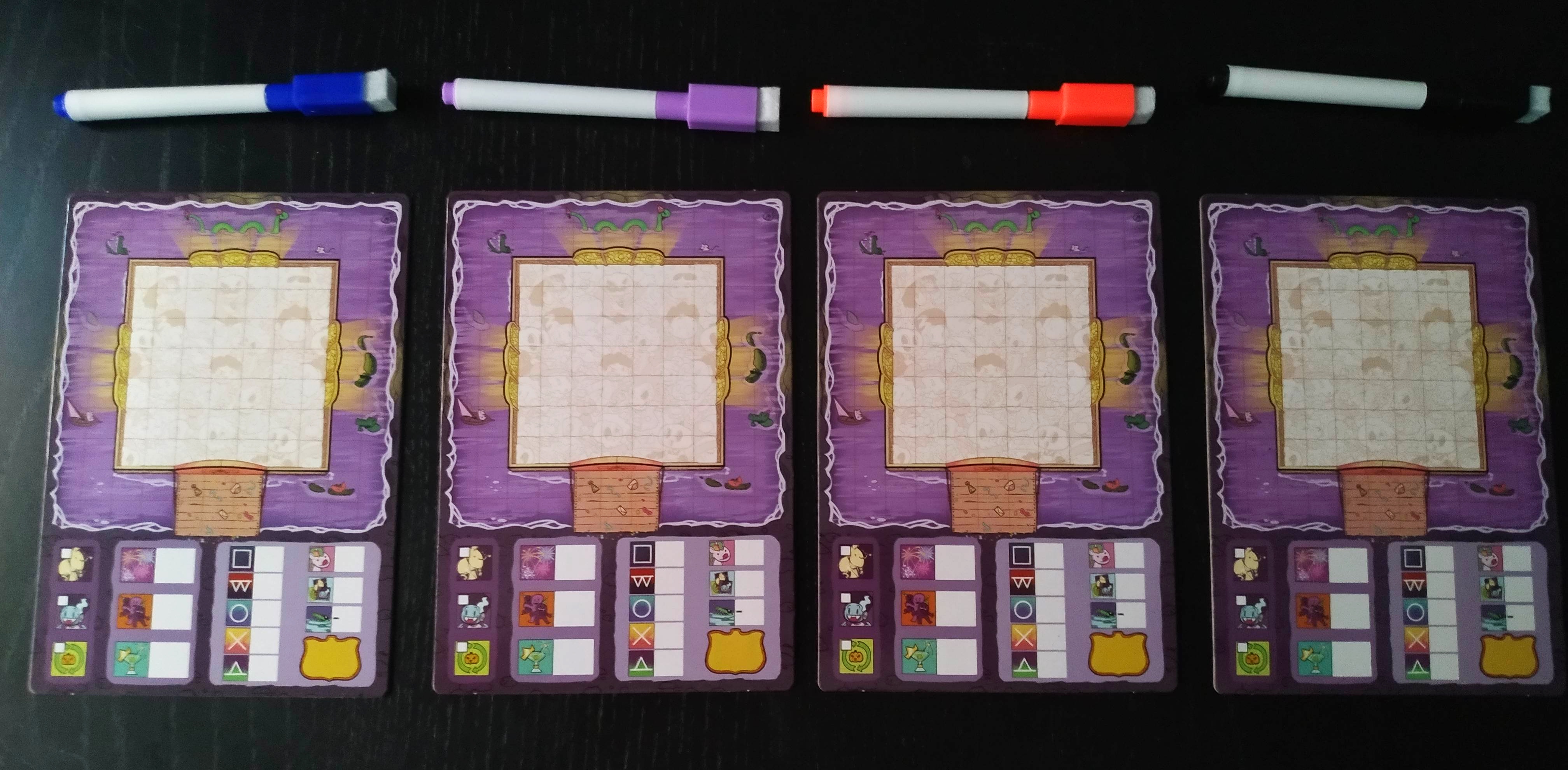 Las pizarras se dividen en dos partes: Una superior, donde se encuentra dibujado y dividido por cuadrículas el castillo con su foso y su puente levadizo, y otra inferior, que es donde nos encontramos y escribiremos las diferentes acciones especiales que vamos realizando o las puntuaciones que obtengamos. Además, cuenta con dos lados diferentes: Por un lado se jugará la versión normal del juego y, por el otro lado, se jugará la versión avanzada.