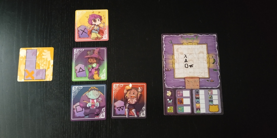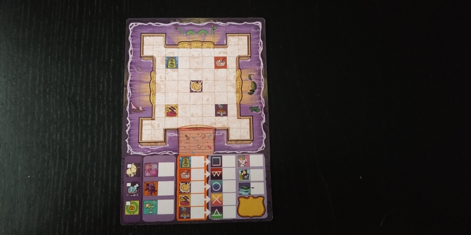 Una vez que lo esté, cada jugador deberá colocar los símbolos de los monstruos que han formado la figura en su castillo y teniendo en cuenta la orientación exacta que ellos ven de la figura. Es decir, si yo me siento en un lado, la figura la veo de una forma, pero el jugador que tengo en frente la verá al revés. Esto hace que, aunque sea la misma figura y se vayan a escribir exactamente los mismos símbolos, cada uno de los jugadores los colocará de forma distinta y obtendrán, pues, disposiciones diferentes de símbolos en el castillo.