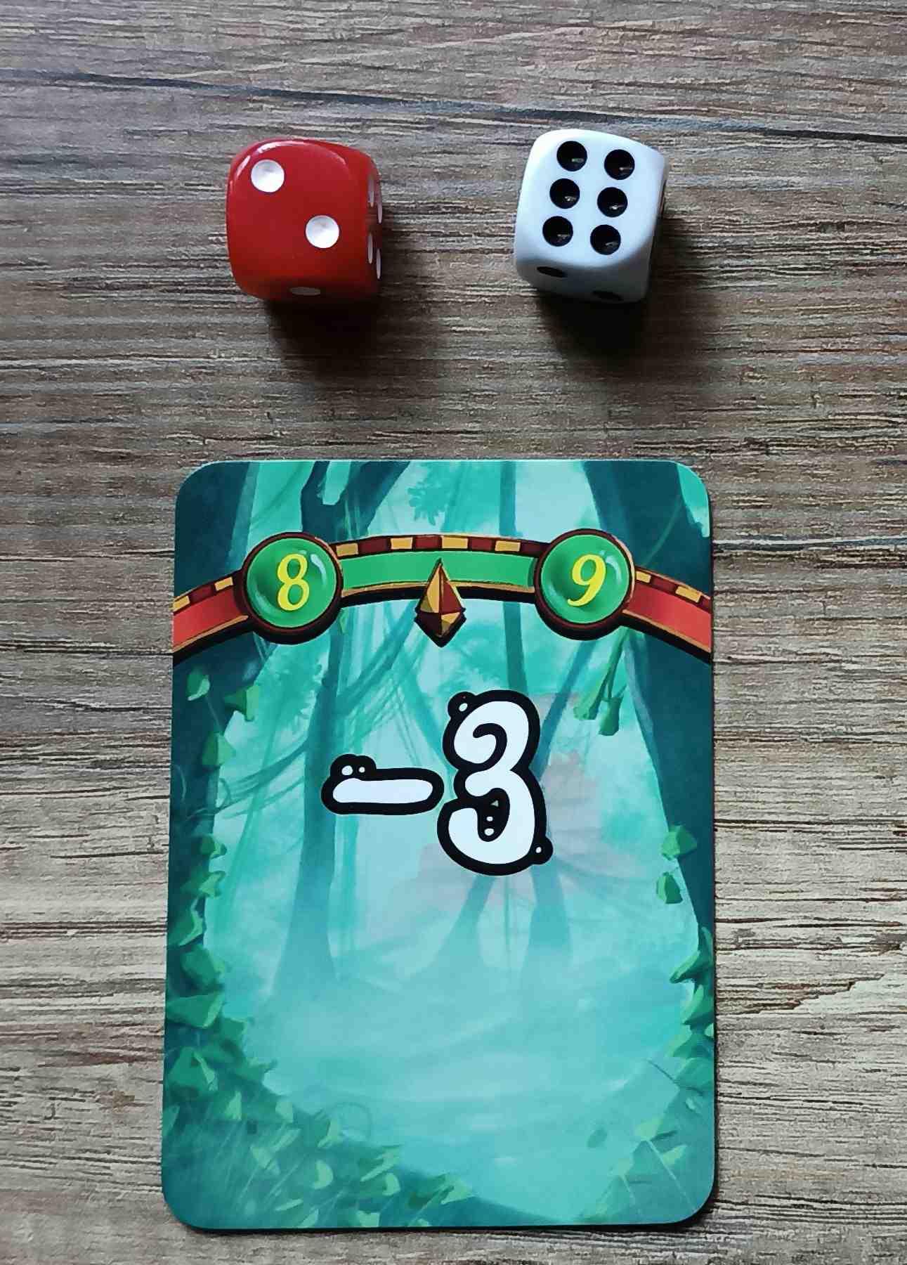 Atravesaremos los peligros de la selva para poder adelantar a nuestros rivales mientras tiramos los dados e intentamos sacar obtener un resultado que esté dentro del rango de nuestra carta de camino superior, pudiendo utilizar las cartas de nuestra mano para modificar el resultado.