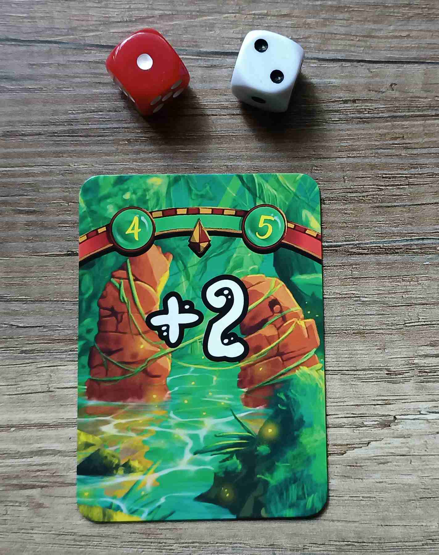 Los dados pueden dar varias combinaciones y tendremos que fijarnos bien para realizar la acción correspondiente: si muestran el mismo número, tendremos que robar la carta de arriba del mazo de naturaleza y resolver su efecto.