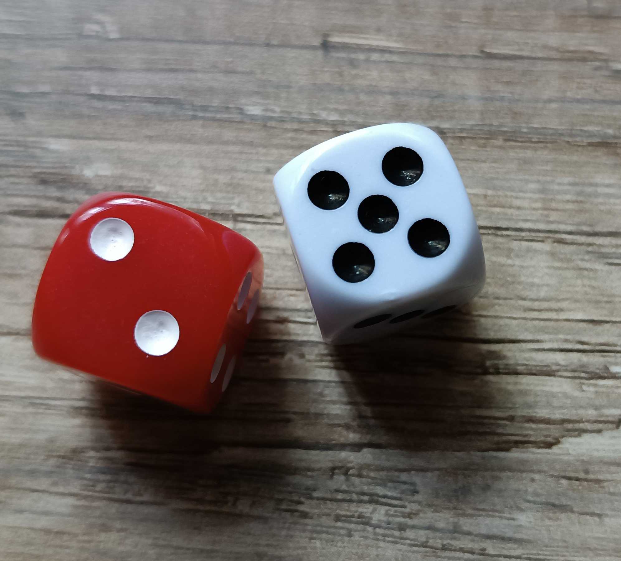 También incluye dos dados de 6 caras, uno rojo y uno blanco, con los que jugaremos durante toda la partida.