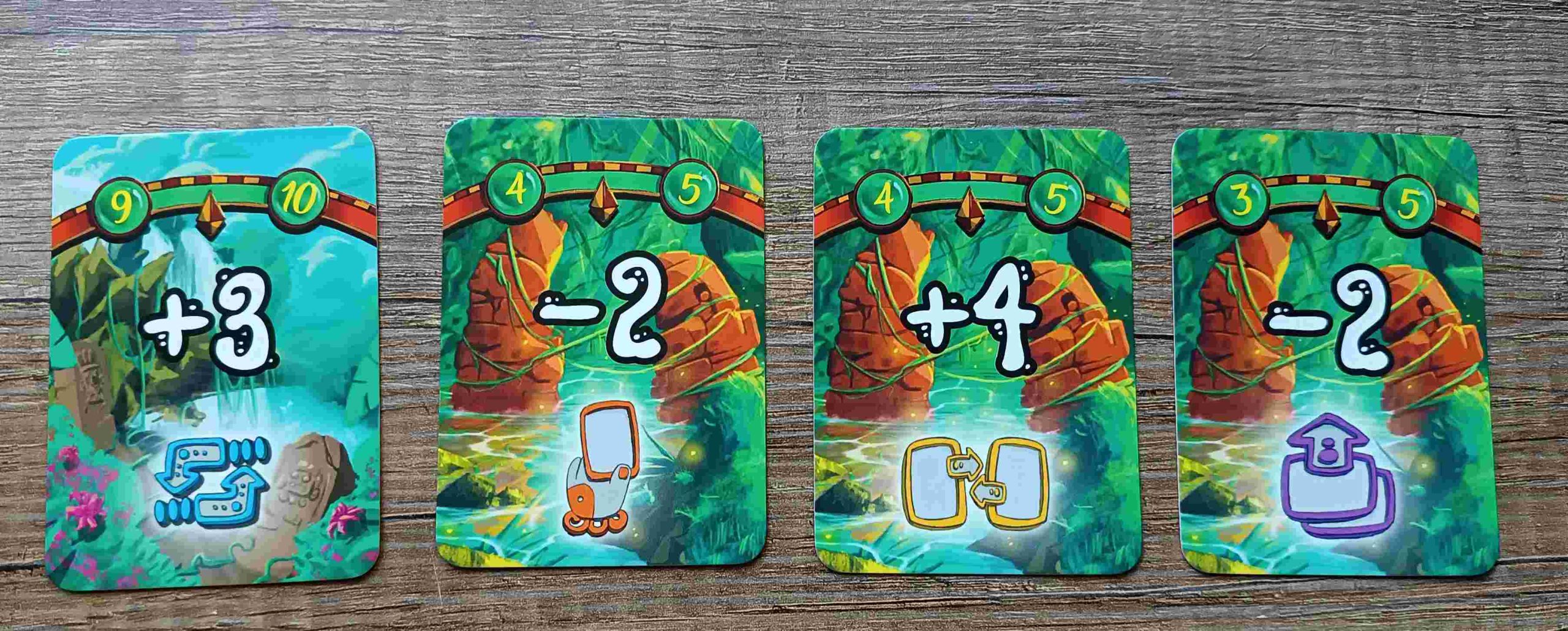 Además, las cartas de naturaleza tienen diferentes acciones que nos permitirán ir modificando el ritmo del juego: cambiaremos el sentido del turno, rotaremos todos los mazos una posición, descartaremos la carta superior de nuestro mazo de senda…Puede que tengamos definida nuestra estrategia y algo pensados nuestros planes pero de repente, todo cambie.