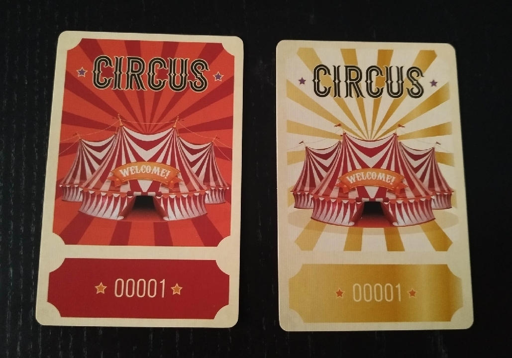 - Ticket dorado: es una entrada al circo especial. Es la carta comodín y la que puedes utilizar como carta de personaje como más te convenga o incluso como carpa para cerrar una partida de Circus.