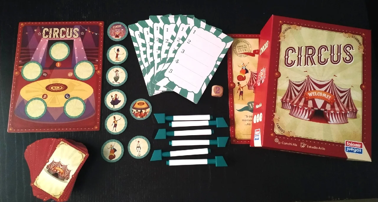 - 5 cartas secretas, 6 personajes misteriosos, un dado, estrategia, memoria, un poco azar y Magia, la del Circo
