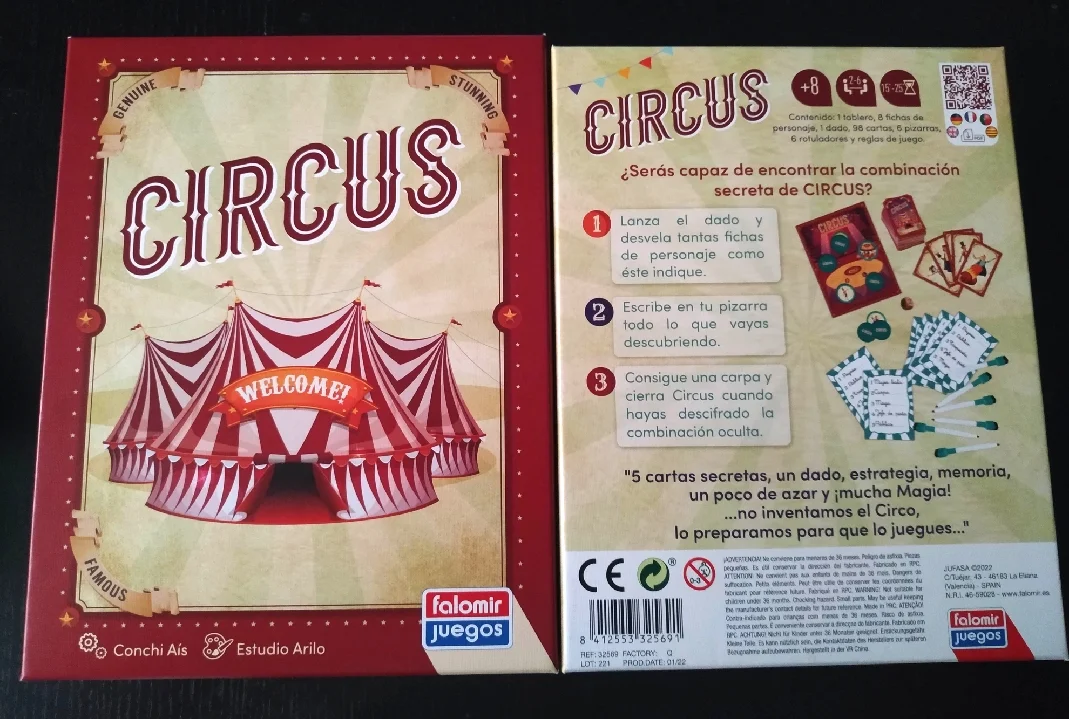 Por cerrar, decir que Circus es un juego familiar de deducción muy sencillo, divertido, con turnos ágiles y mecánicas directas que divertirá a pequeños y mayores. Con una muy buena producción, consigue atraer a todo tipo de públicos tanto por sus pizarras como por el diseño de todos los materiales, cosa que, sumada a la experiencia de juego, consigue que queramos probar suerte en una partida más para adivinar la combinación oculta de personajes en el tablero.