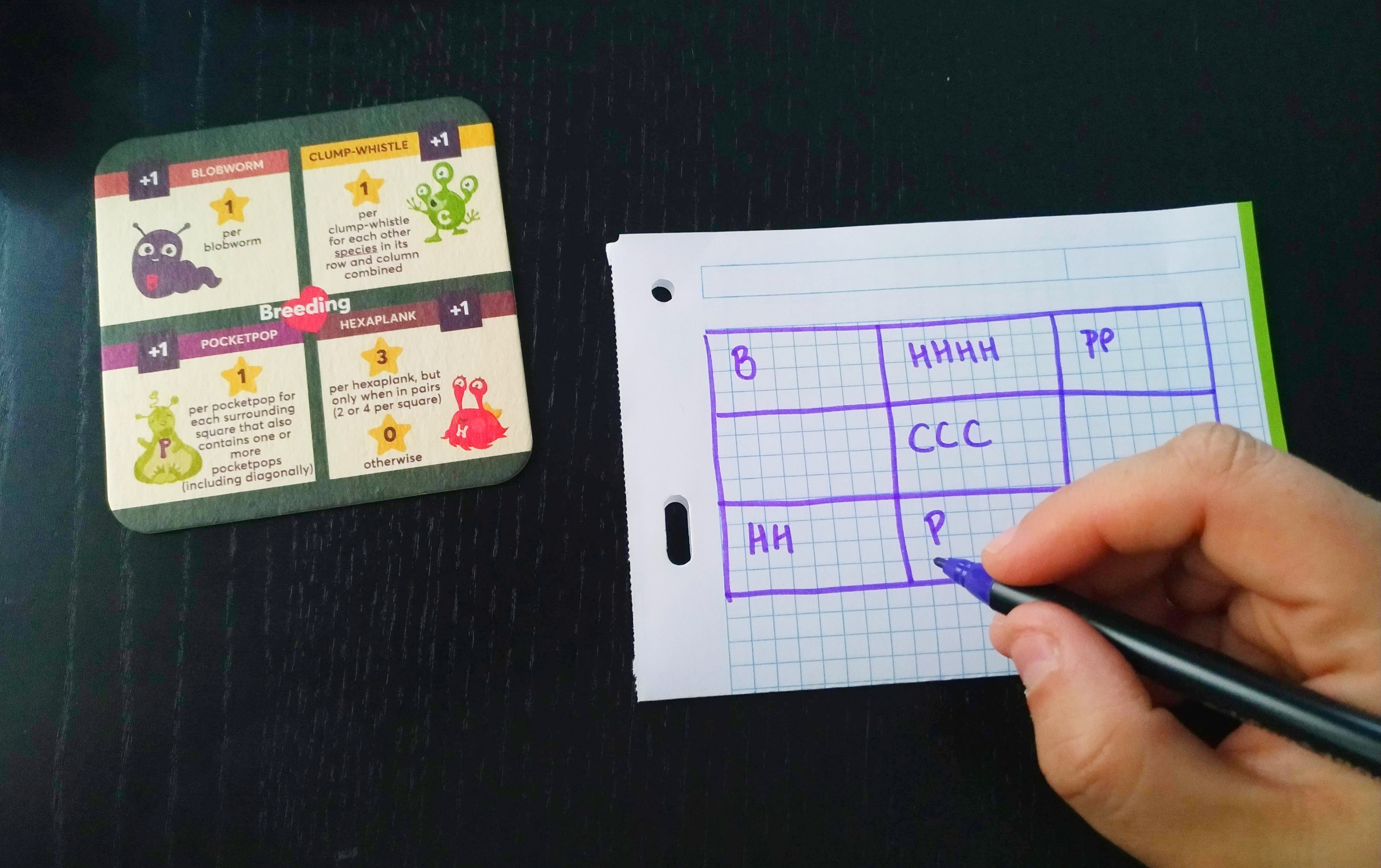 Pasaremos a puntuar sobre nuestra cuadrícula individual según las puntuaciones que proporciona cada tipo de alien. El jugador con más puntos, habrá ganado la partida.
