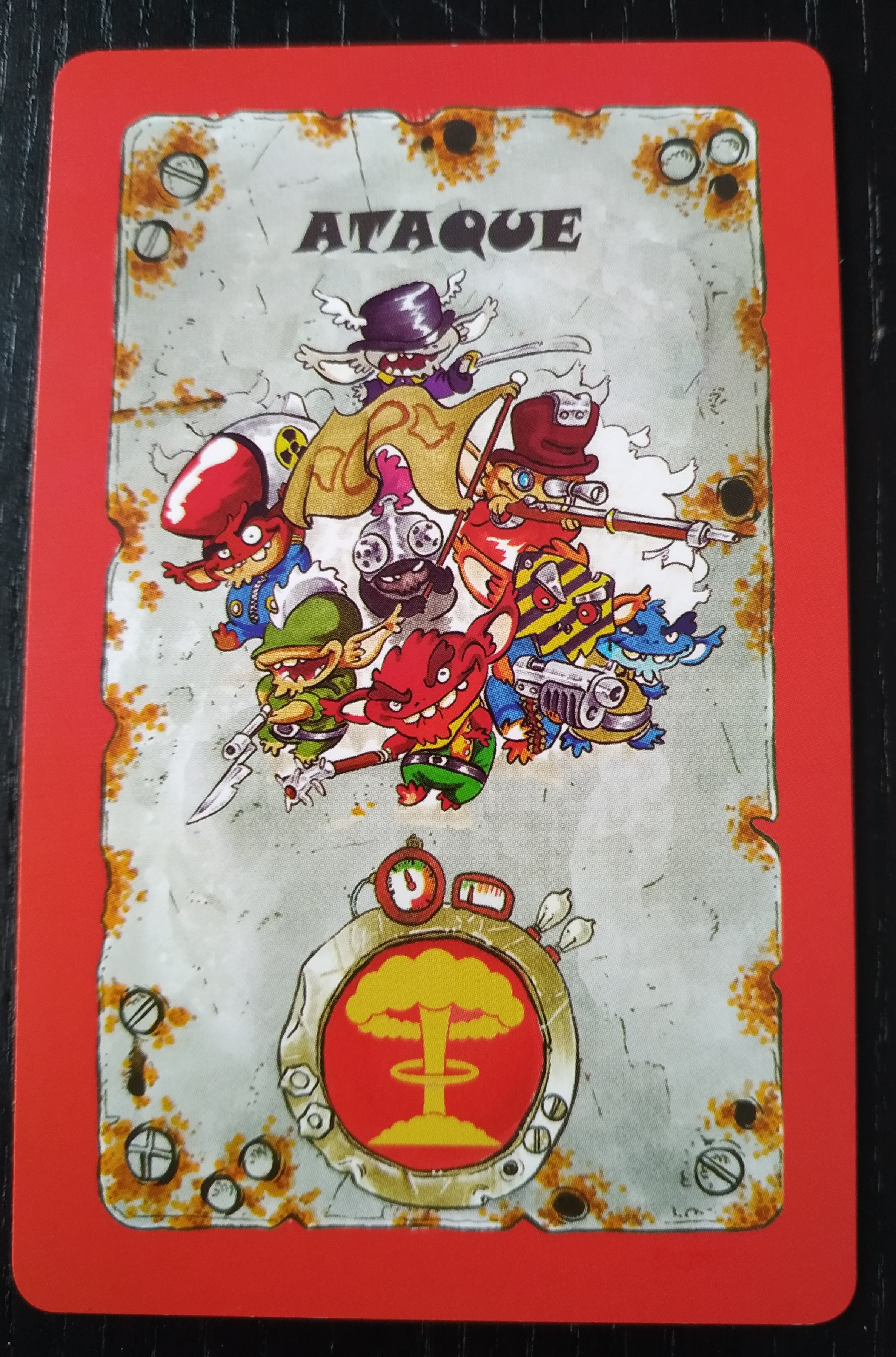 • Ataque: Solo la podremos jugar si al menos hay 1 carta en alguna de las aldeas. Cuando es utilizada, todos los jugadores deben mandar las cartas que tengan en sus aldeas al desguace. Cuando se ha hecho, cada jugador robará del mazo de barracones tantas cartas como cartas de tropa había en su aldea.