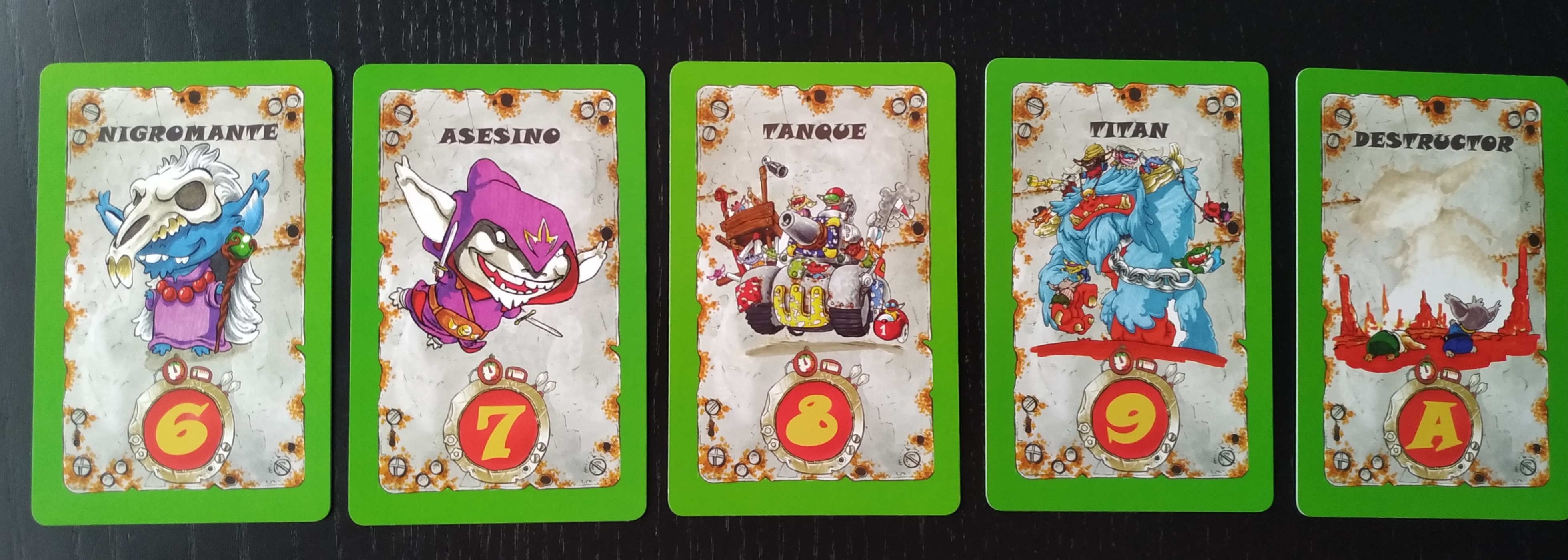 Respecto a la carta «Destructor» que es la que tiene una «A» como valor, decir que cuando se lanza sobre otra carta de tropa que está arriba de una aldea enemiga, tendrá el mismo efecto que la carta de Acción «Ataque» pero solamente afectará a dicha aldea y tiene valor 10. Si se lanza sobre una carta de Acción «Potenciador» o en alguna aldea vacía, actuará como una carta de tropa normal con valor 1.