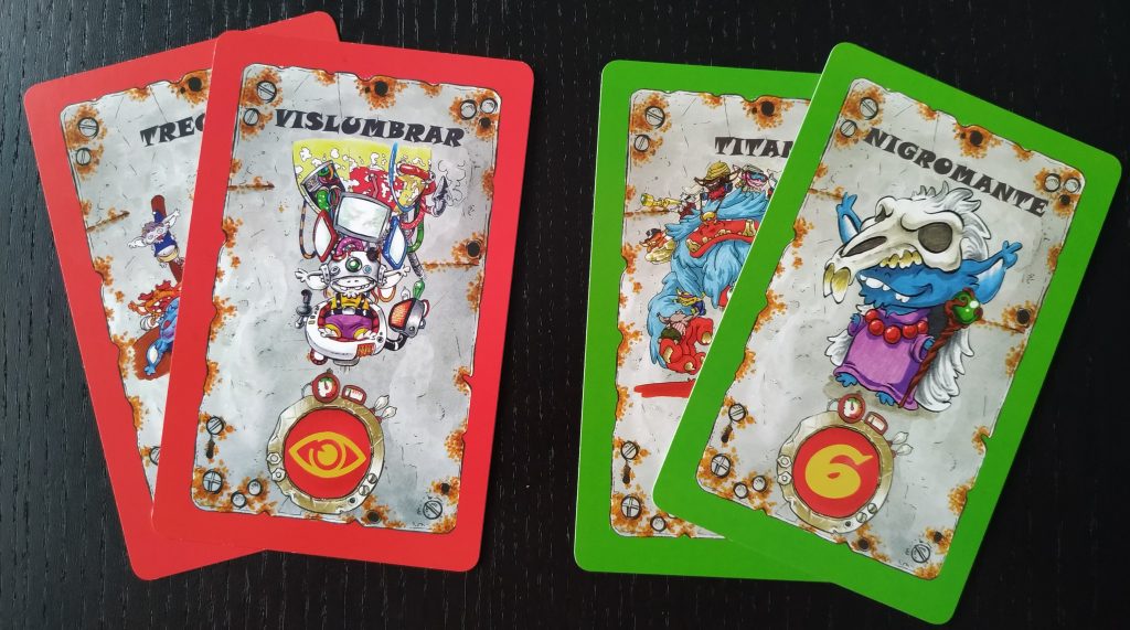 • Vislumbrar: Cuando la usemos, robaremos dos cartas de los barracones y descartaremos una de nuestra mano. Después, el jugador podrá usar una carta de su mano.