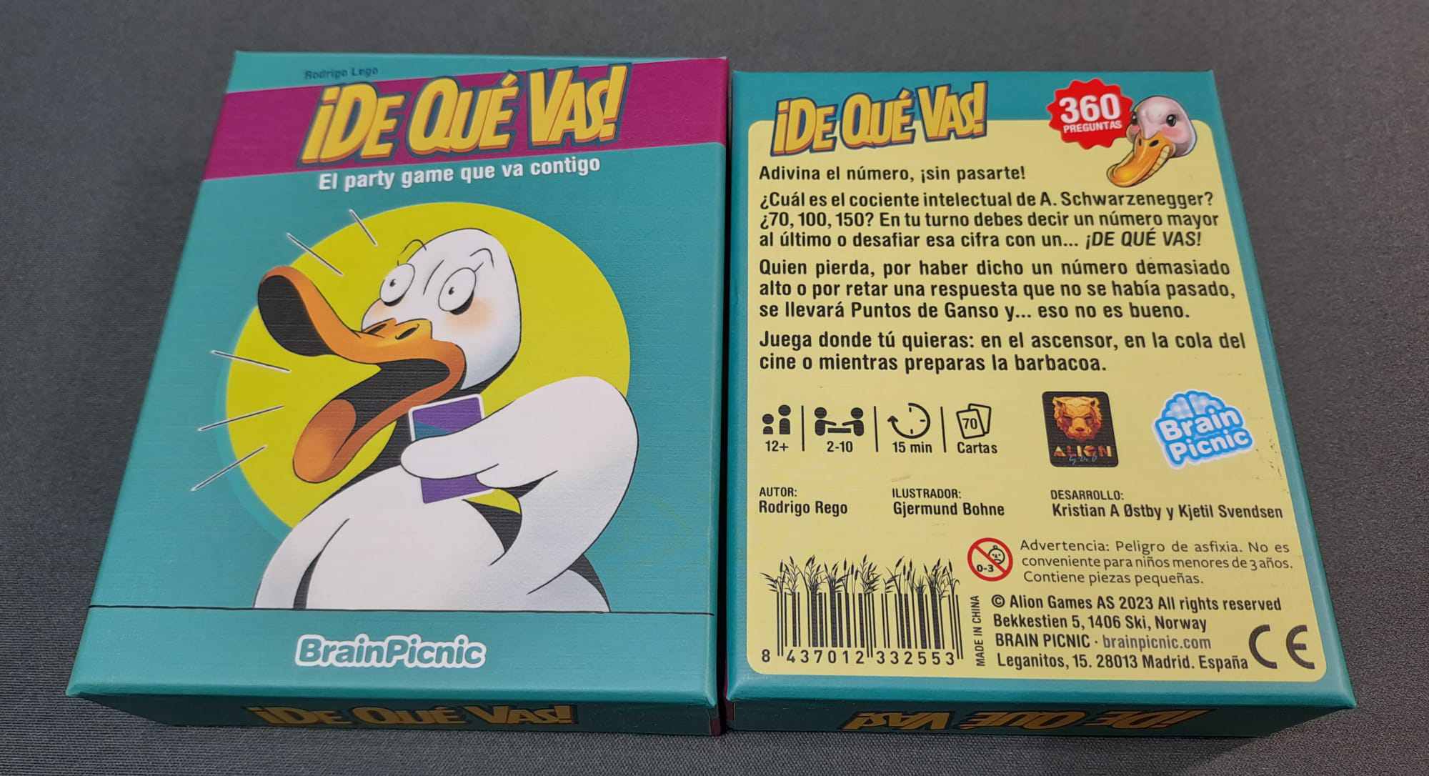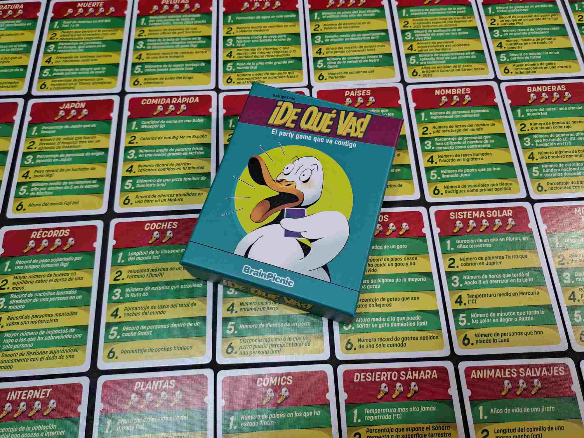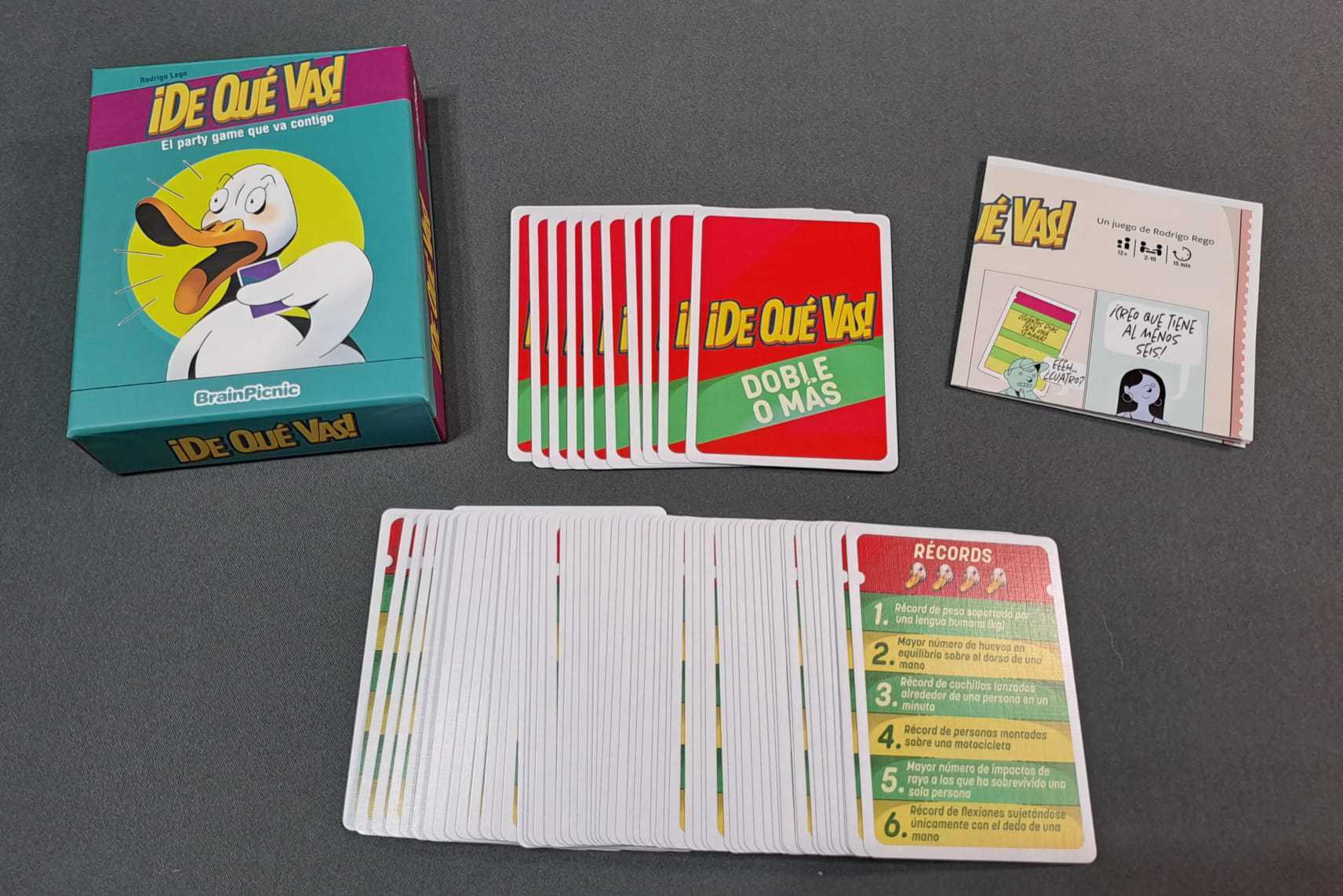 ¡De qué vas! es un party game de cartas en el que deberéis adivinar la respuesta numérica de las distintas preguntas sin pasarte e intentar recibir el menor número de Puntos de Ganso para haceros con la victoria.