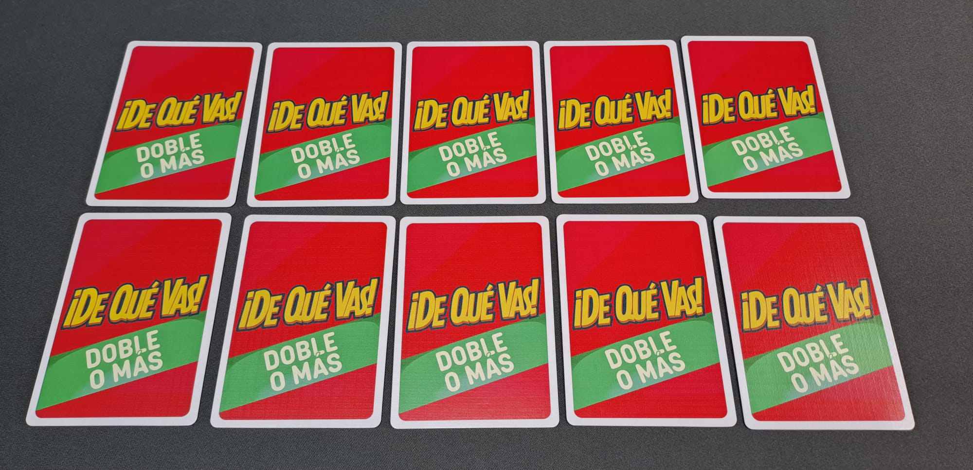 Además de estas 60 cartas, que componen el juego base, se incluyen otras 10 cartas más, de «doble o mas», y que servirán para una de sus variantes.