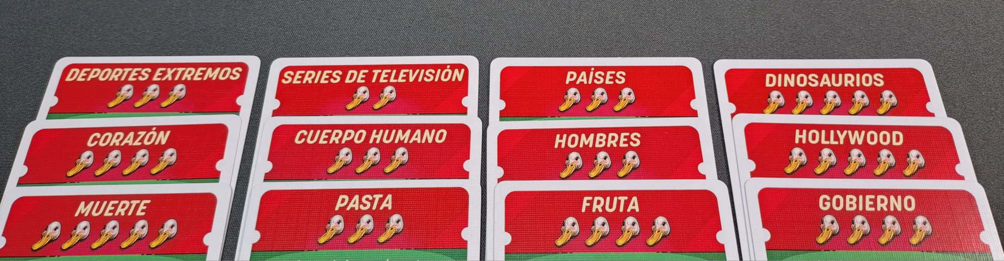 - Baraja las 60 cartas temáticas y colócalas, formando una pila, en el centro de la mesa y con la cara que muestra los gansos.