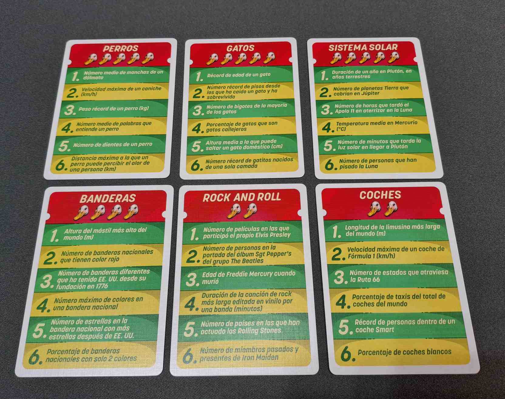 También debemos fijarnos que cada carta tiene una temática que cumplirán todas las preguntas de la misma.