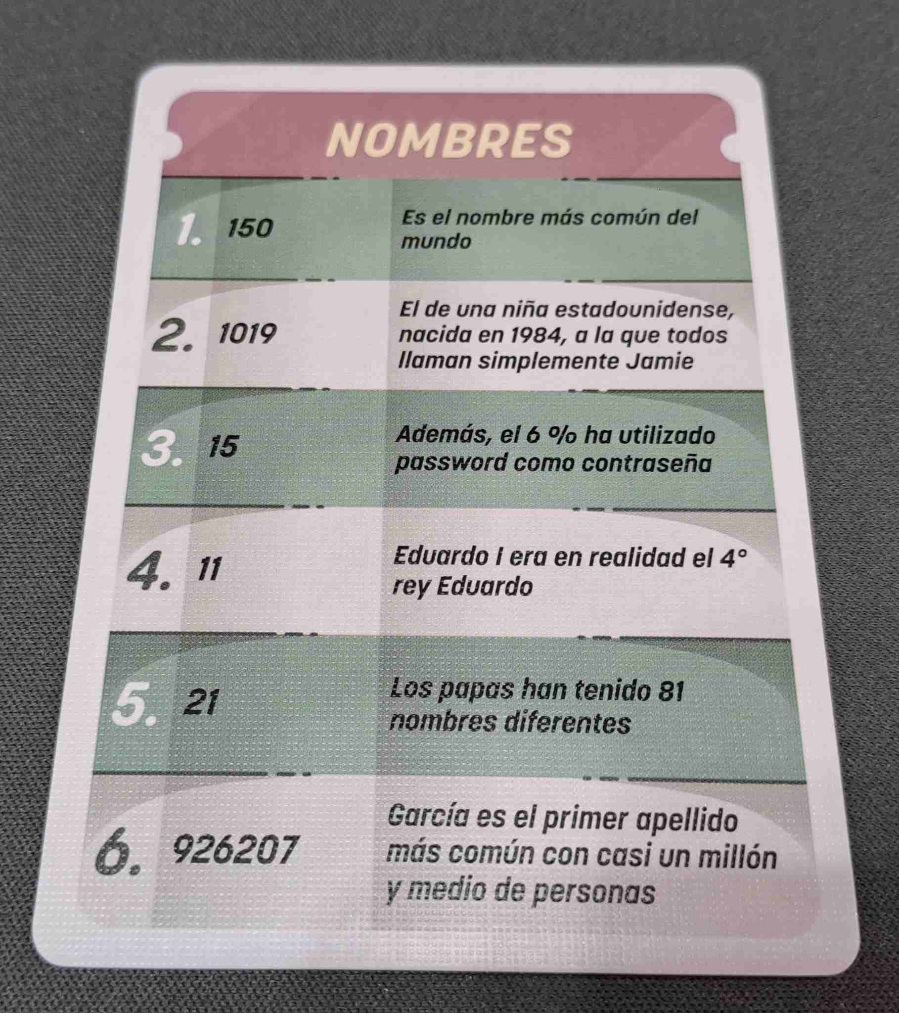 Y segundo, aunque con el paso del tiempo se puedan repetir, muchas de ellas ni por asomo te acordarás de la respuesta correcta porque son cifras que difícilmente se te quedarán en la cabeza y mas teniendo en cuenta todo lo que pudo pasar en la partida cuando se intento resolver dicha pregunta y más teniendo en cuenta, que probablemente, lo jugarás con distintos grupos. Además, como decimos, lo importante no es tanto ganar o perder, sino disfrutar de la compañía.