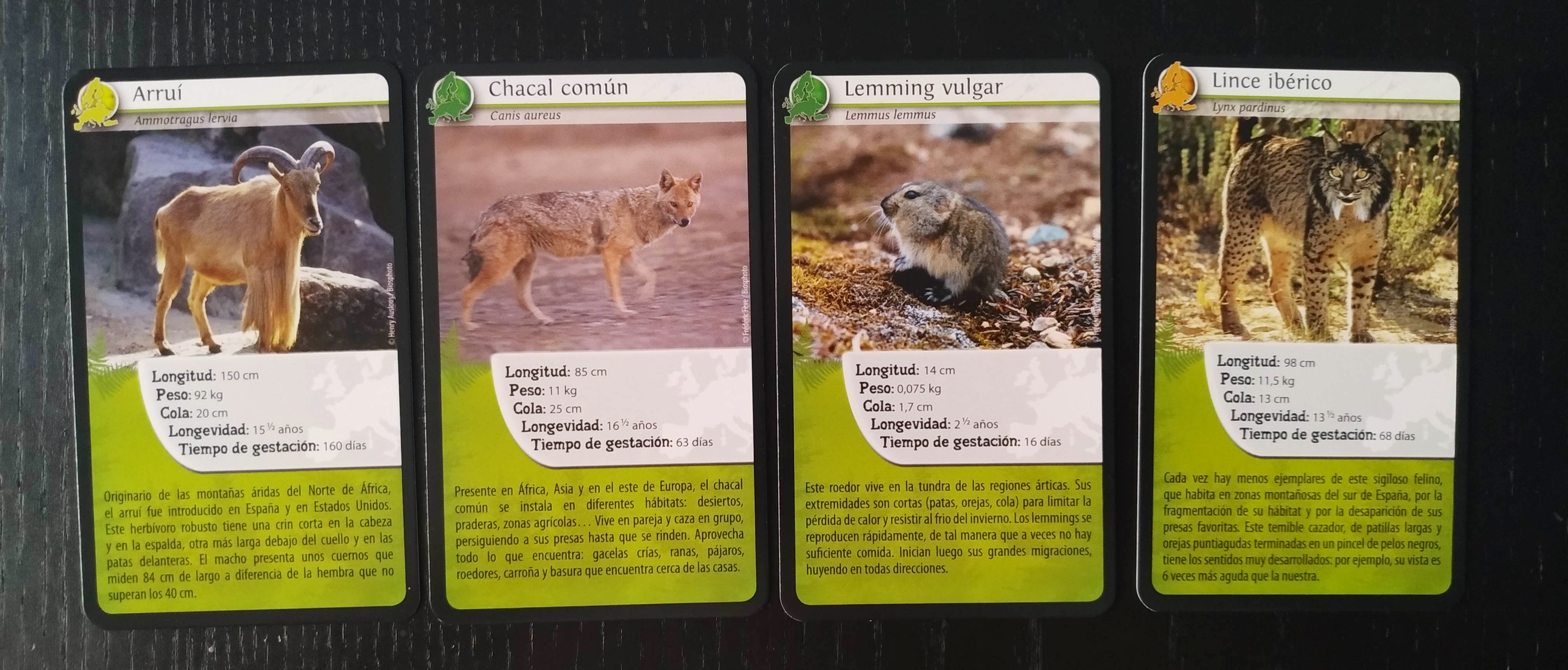 En ésta baraja vamos a encontrar animales muy variados y podemos mencionar algunos como el Arruí, el Chacal común, el Lemming vulgar o el Lince Ibérico.