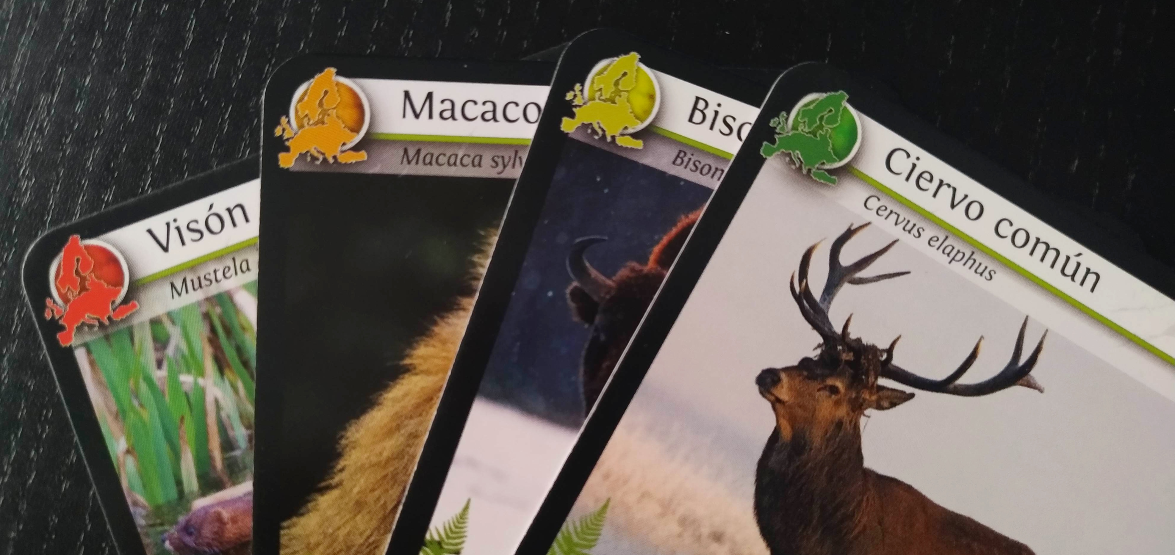 Veremos que en la esquina superior izquierda todas las cartas tienen un círculo de un color que indica cómo de amenazada está esa especie animal.