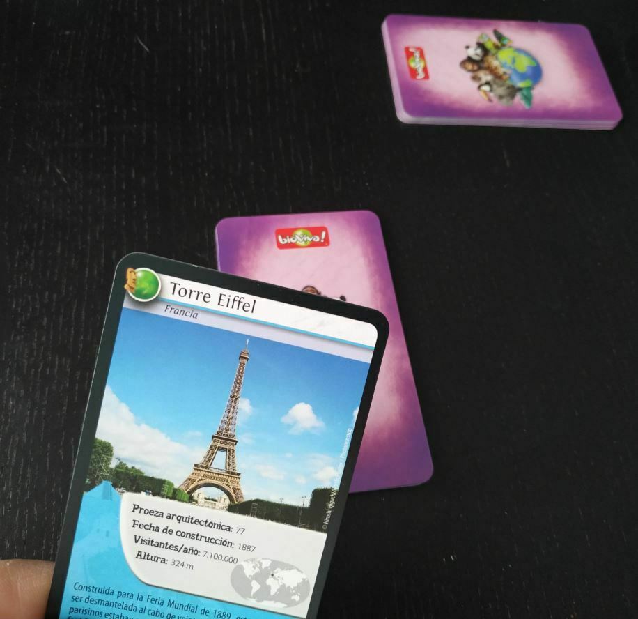 Las características que podremos elegir cuando sea nuestro turno para enfrentarnos a los demás jugadores serán proeza arquitectónica, fecha de construcción, visitantes que recibe al año y altura. Nos ha gustado mucho que, en esta ocasión, aparezca un mapa del mundo y venga señalado dónde podremos encontrar el monumento. De esta manera, nos ayuda también, aunque veamos escrito el país de origen, en qué lugar del mapa se encuentra.
