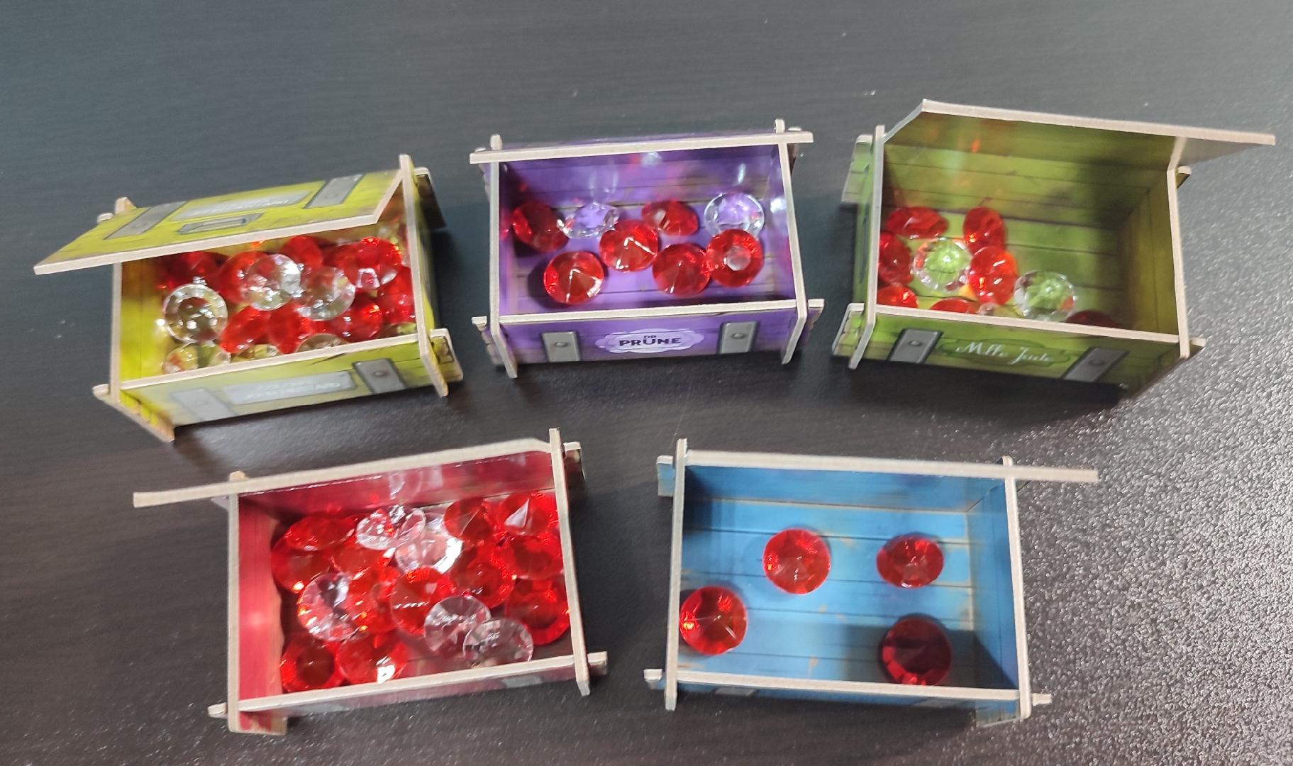 En ese momento, los jugadores deberán contar las gemas que tienen en su baúl, sin olvidar las que tienen en las cartas de reliquia y calculan sus puntos de victoria a razón de:
