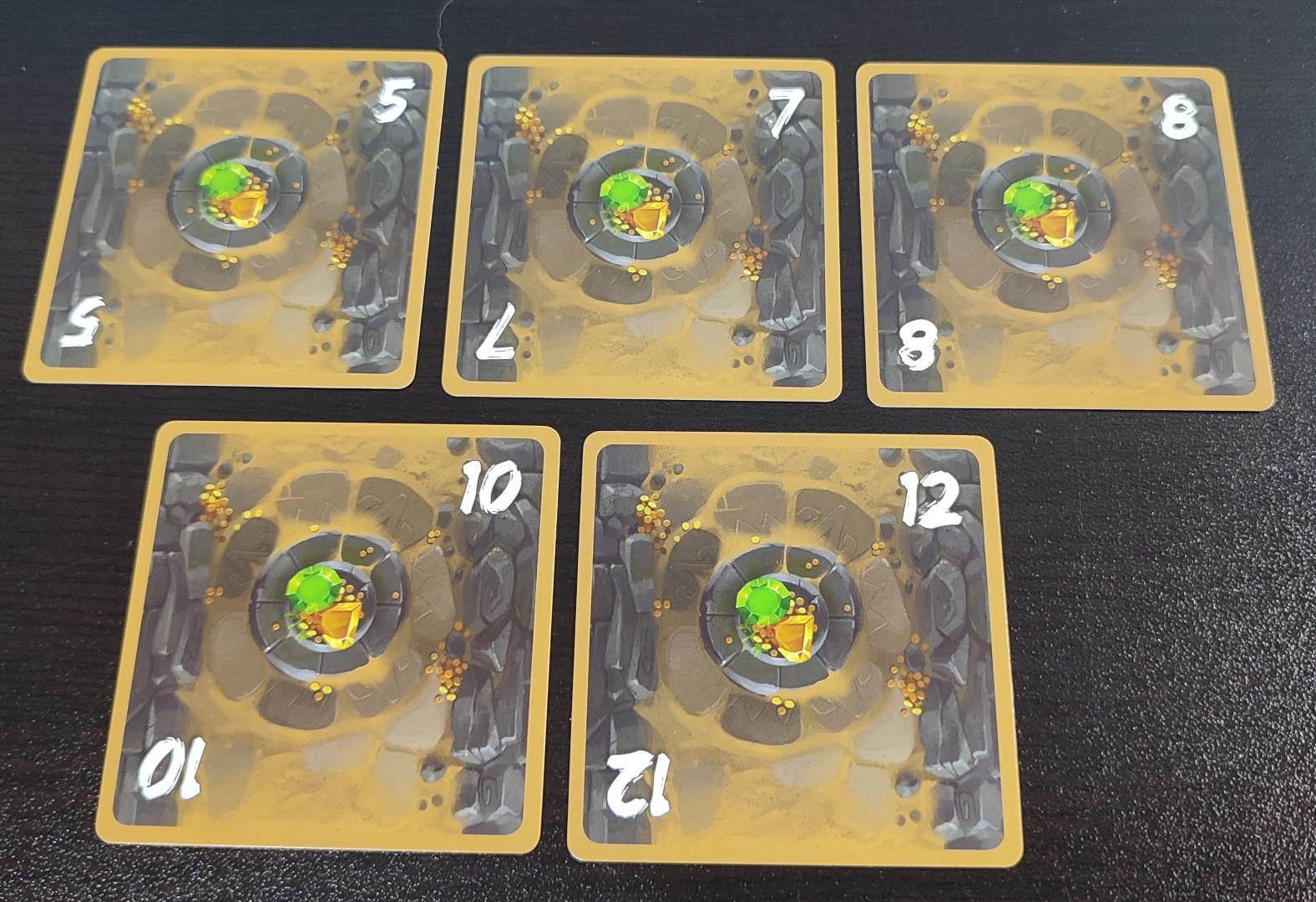 Una partida a Diamant se desarrolla a lo largo de 5 rondas, una por cada entrada de la cueva.