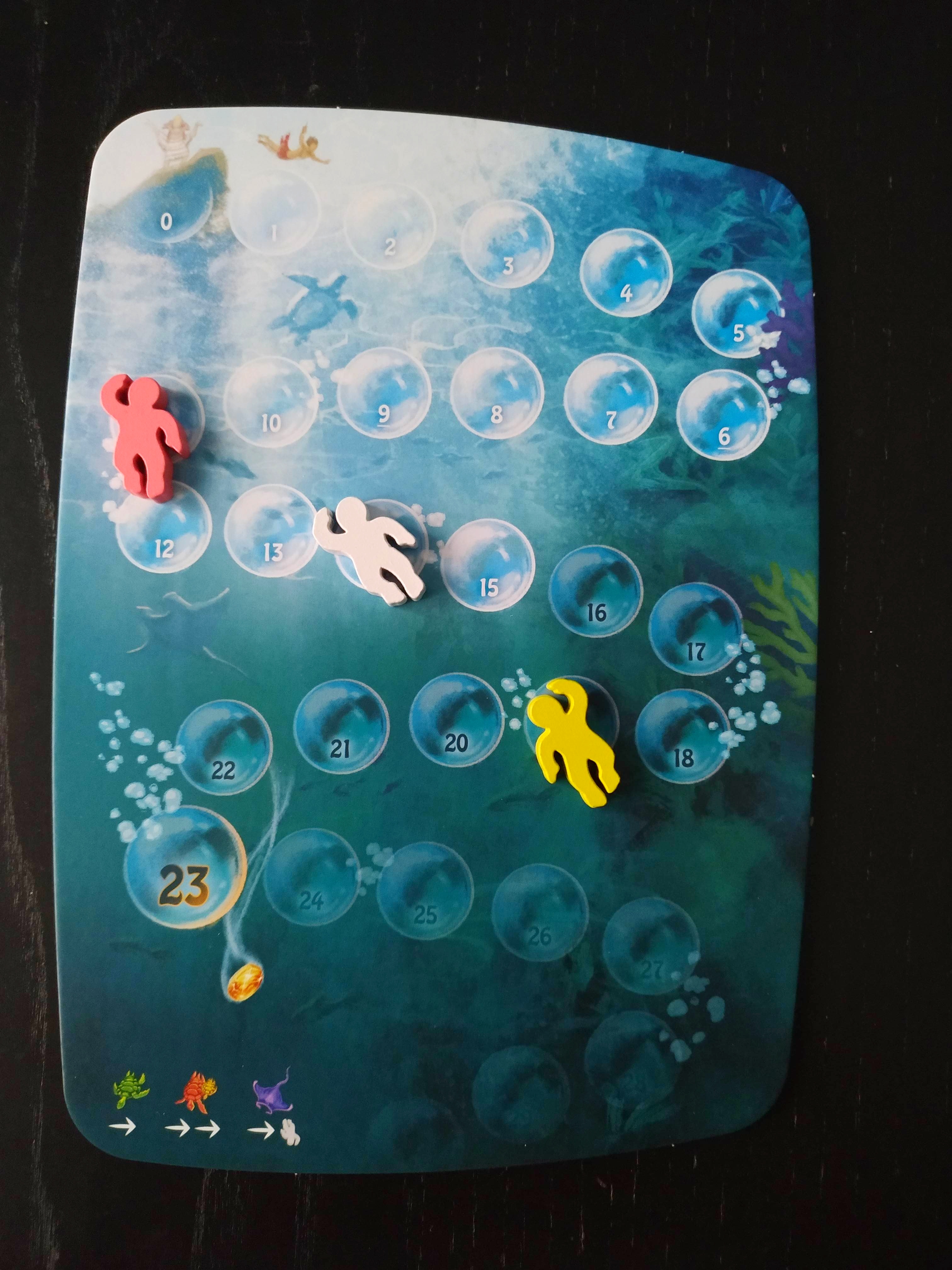 Si por algún motivo se acaban las cartas de océano antes de que cualquier buceador haya llegado a la casilla 23, la partida finalizará al final de la presente ronda y miraremos el tablero de inmersión.