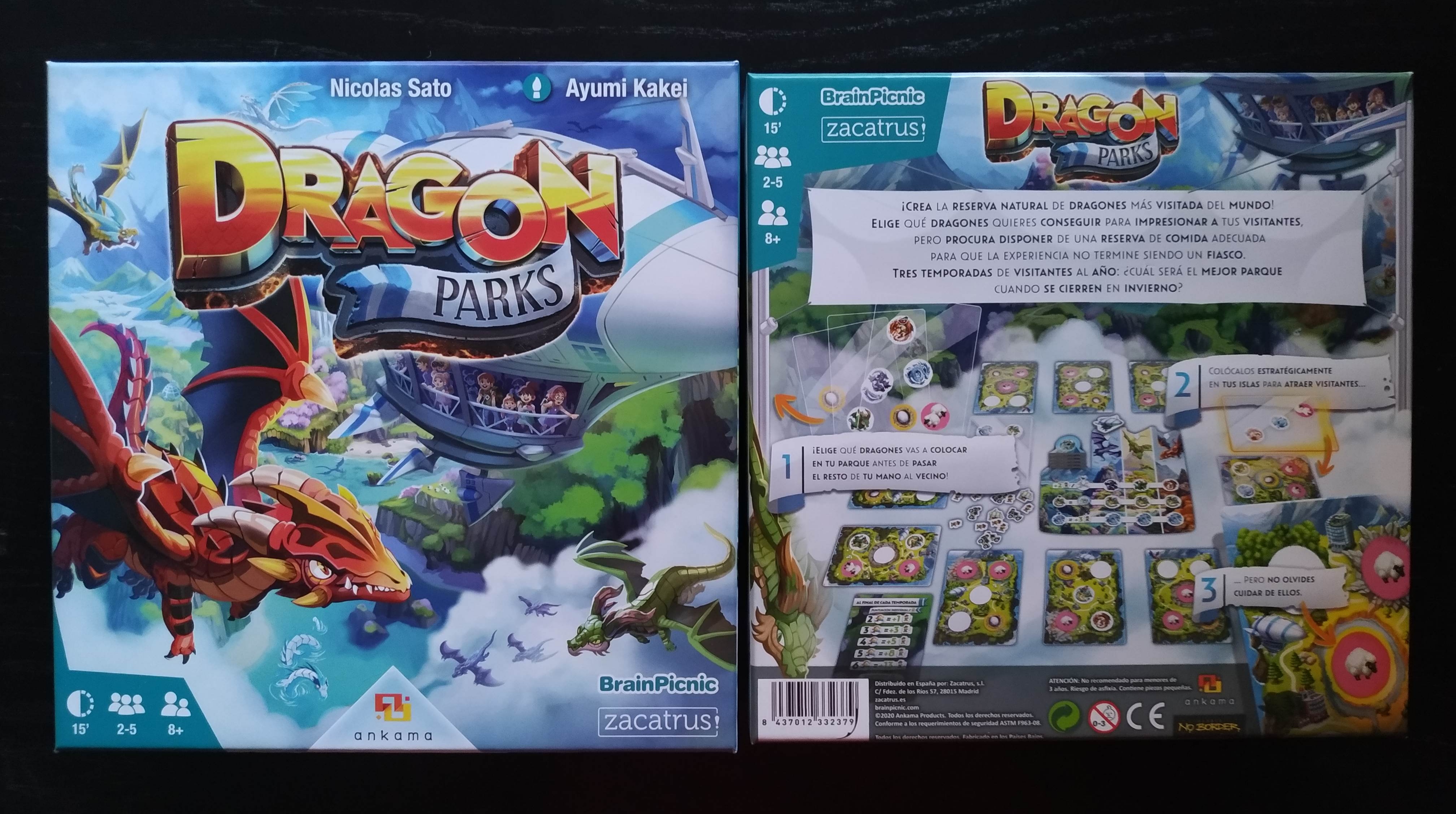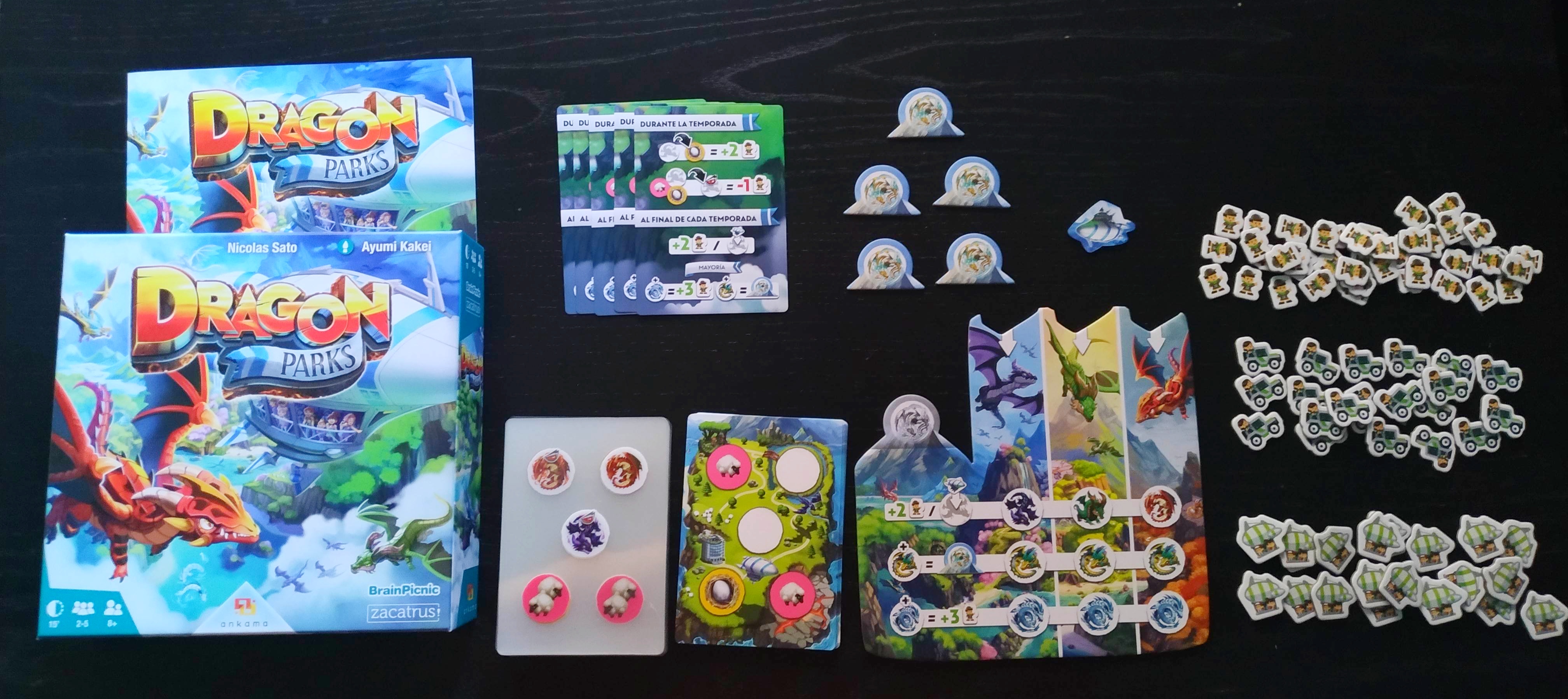 Tras el exitazo de Draftosaurus donde los jugadores debían crear el mejor parque de dinosaurios a través de un draft de meeples, Zacatrus y Brain Picnic deciden traernos ahora la edición en castellano de Dragon Parks, un juego que aunque pertenece a la misma familia y tiene algunas similitudes, es un título totalmente independiente que se puede jugar perfectamente sin conocer a su hermano. En esta ocasión, los jugadores deberán crear también un parque, pero esta vez lo harán de animales alados, en concreto, de diferentes especies de dragones y en lugar de ser un draft de meeples, se trata de un draft de cartas.