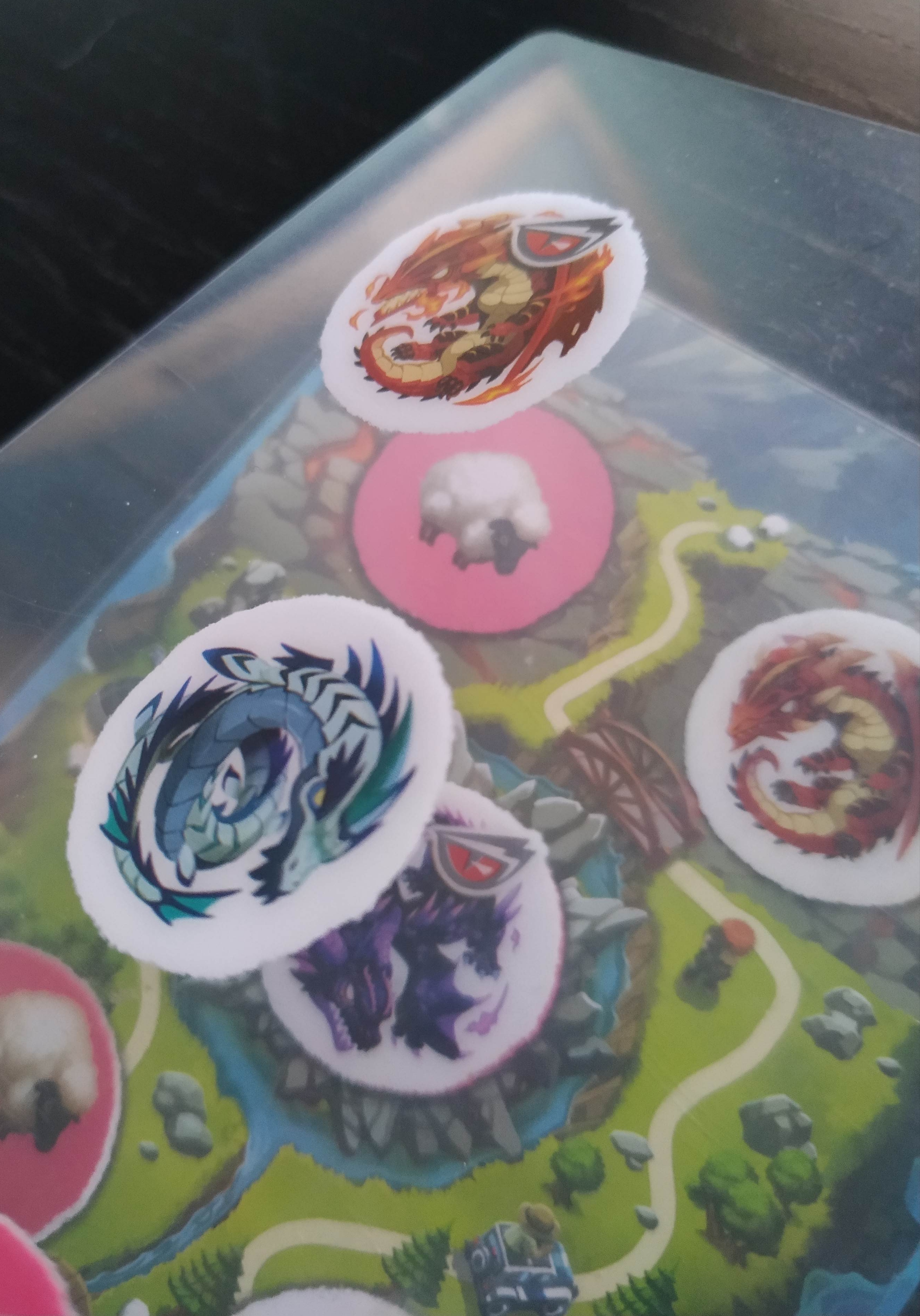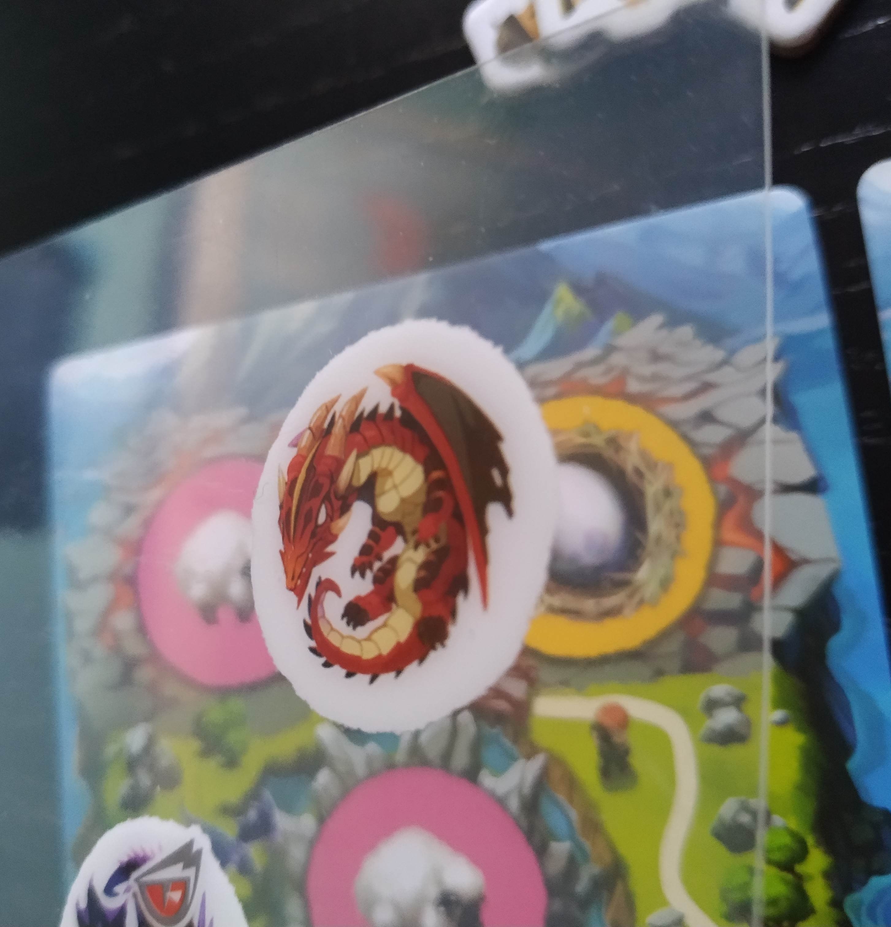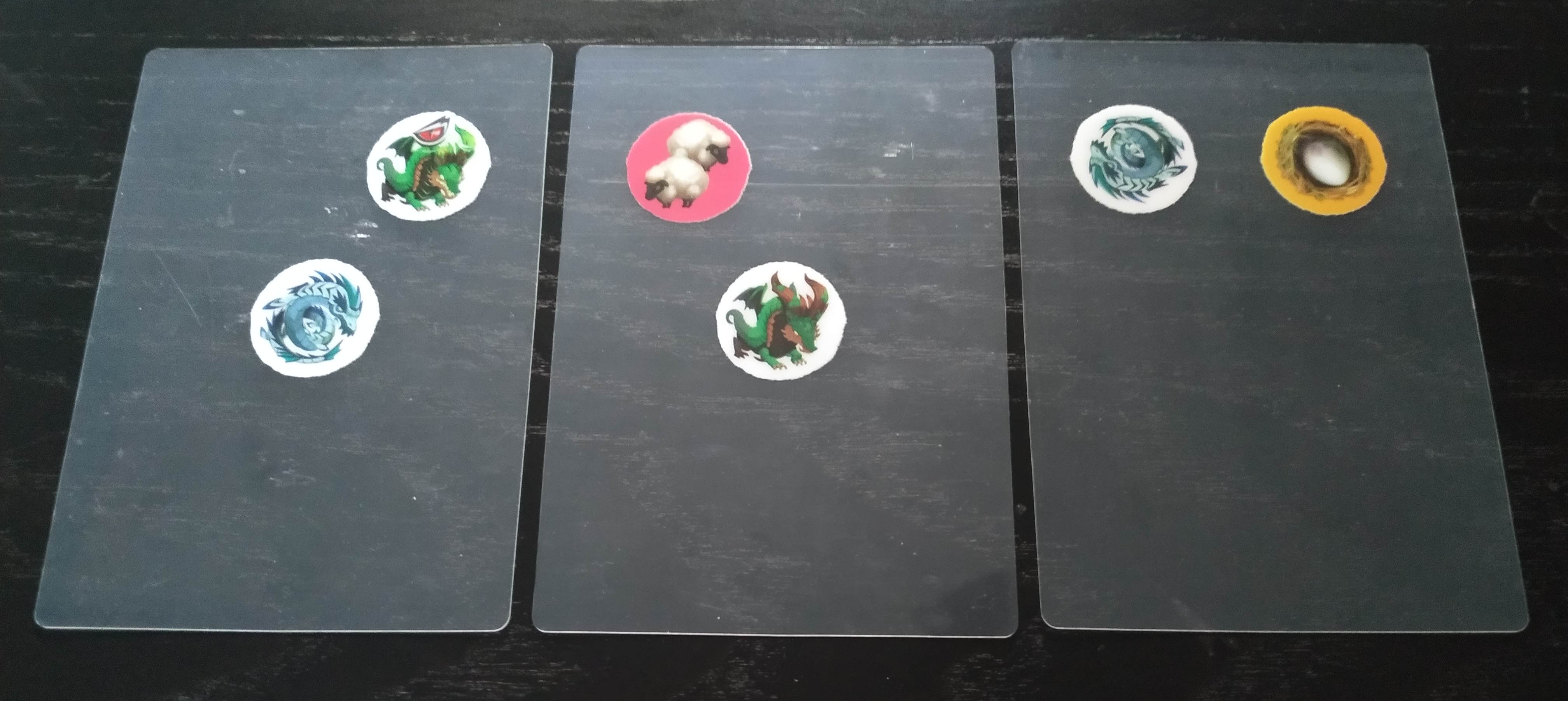 • Dragón furioso: Cuando un dragón furioso, es decir, que tiene un ojo rojo en su ilustración, es cubierto por cualquier elemento, ya sea otro dragón, un huevo o un cordero, el jugador pierde 1 visitante de su parque.